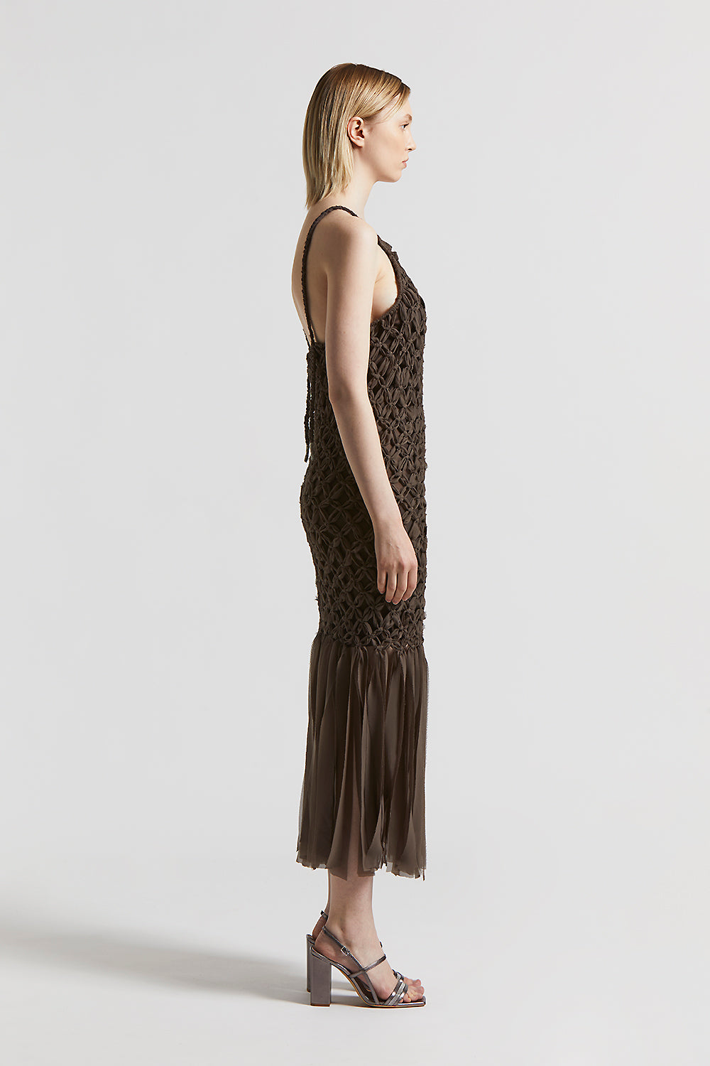 This dress is perfect for warm summer evenings with a sophisticated and modern look.