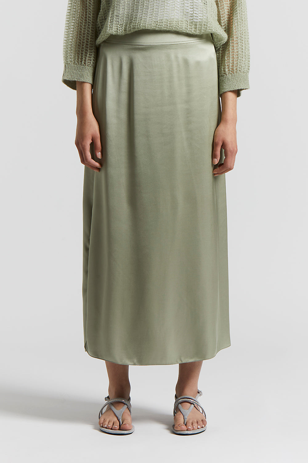 Peserico – Long skirt in viscose satin – Eucalyptus