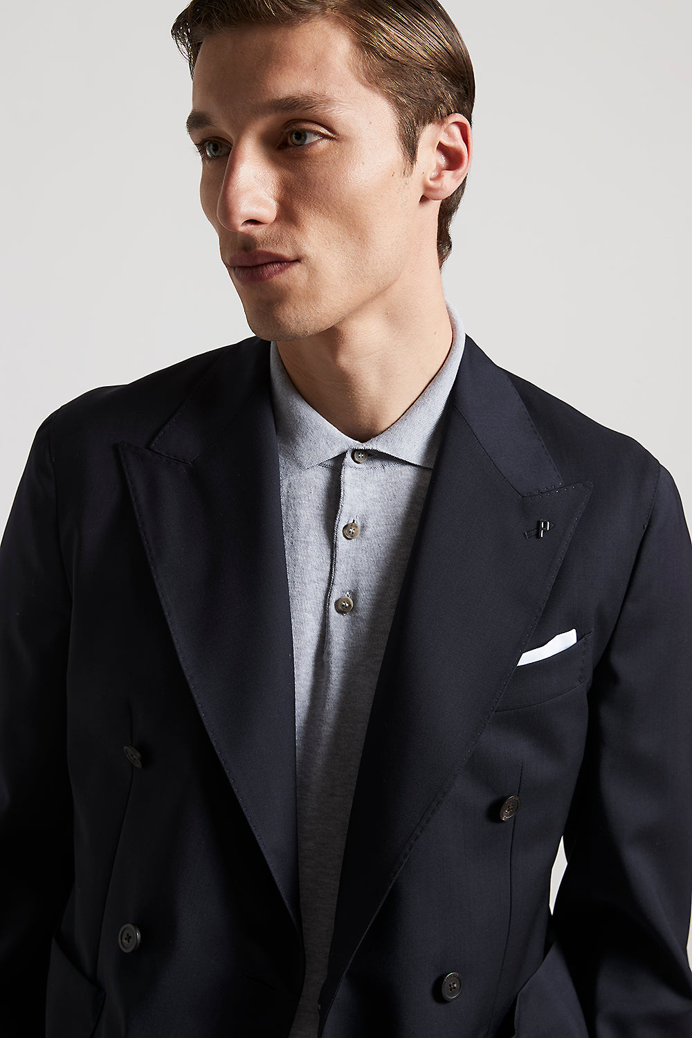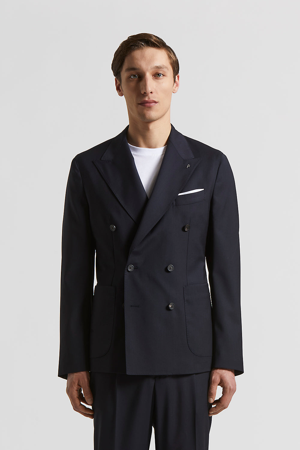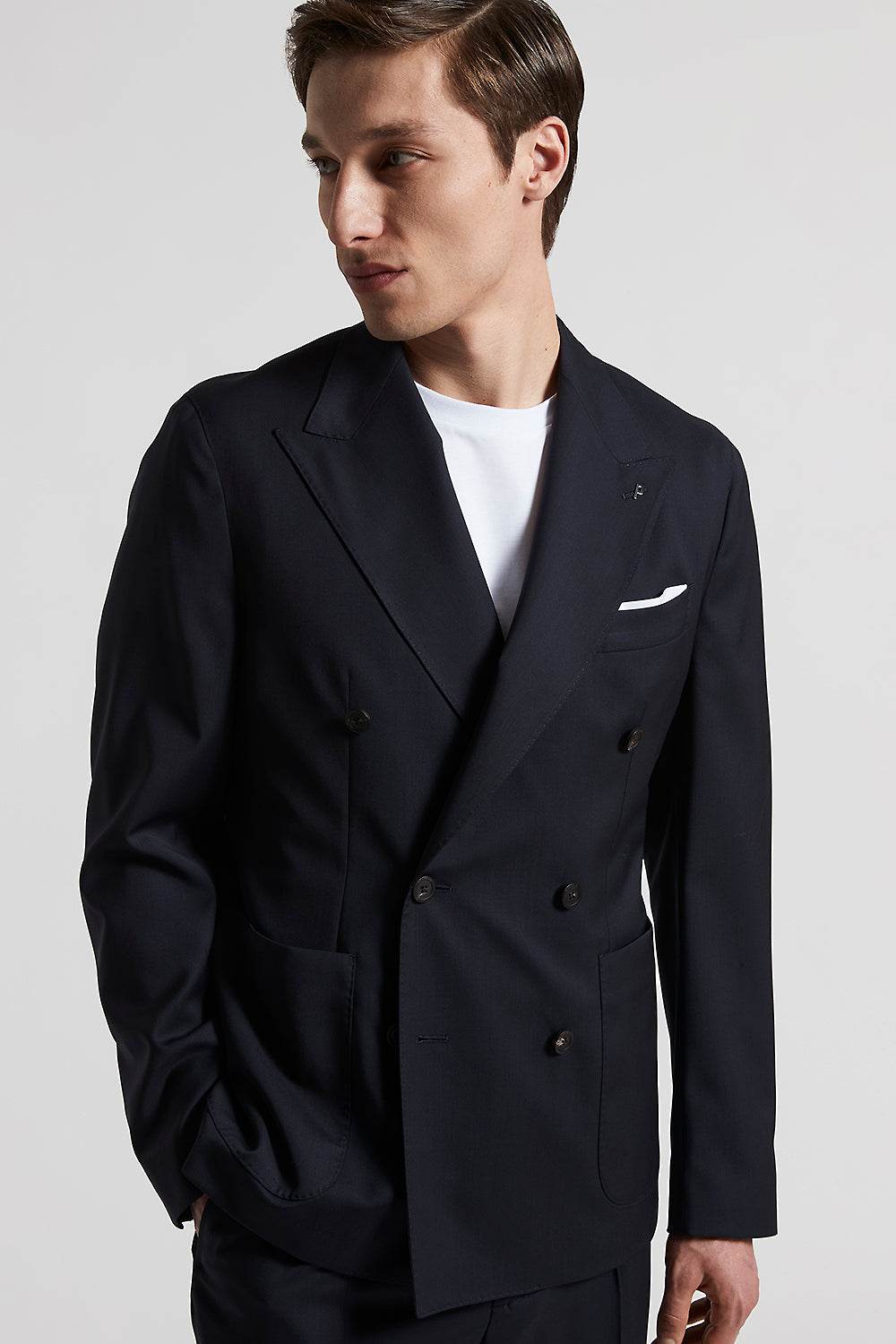 An expression of sophistication, where the double-breasted blazer breaks with convention to embrace a more fluid, modern look.