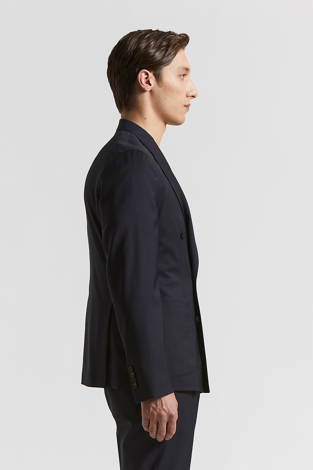 Deconstructed, half-lined jacket featuring the lightness of “Loro Piana” merino wool, a fabric that offers a perfect balance of softness and durability.