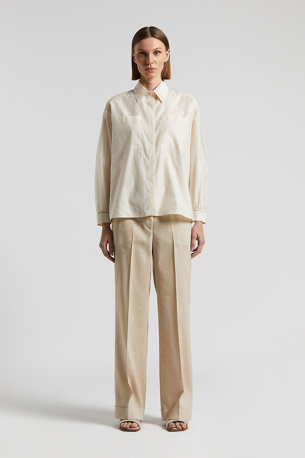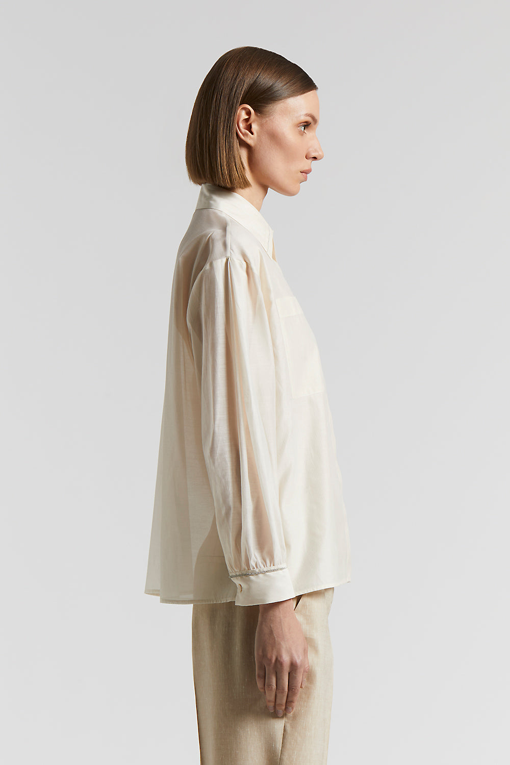 Peserico – Matt silk and cotton organza shirt – Quartz sand