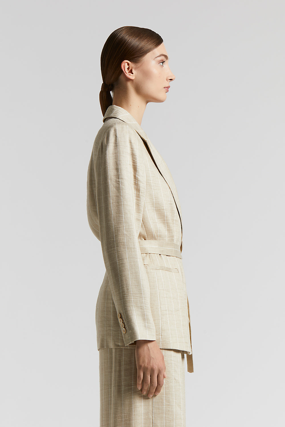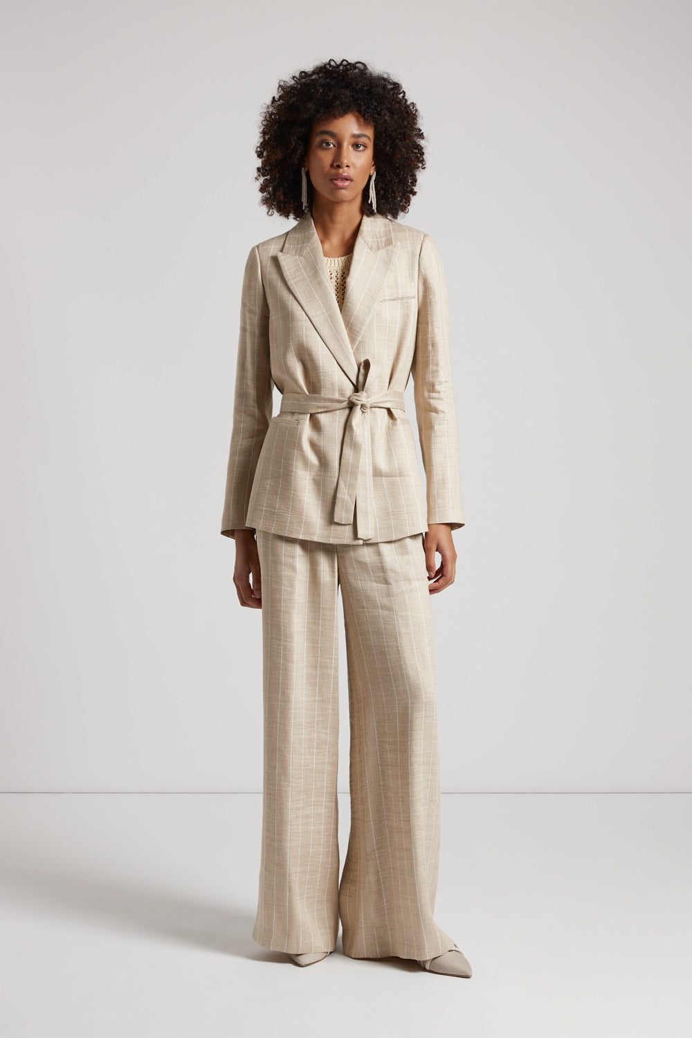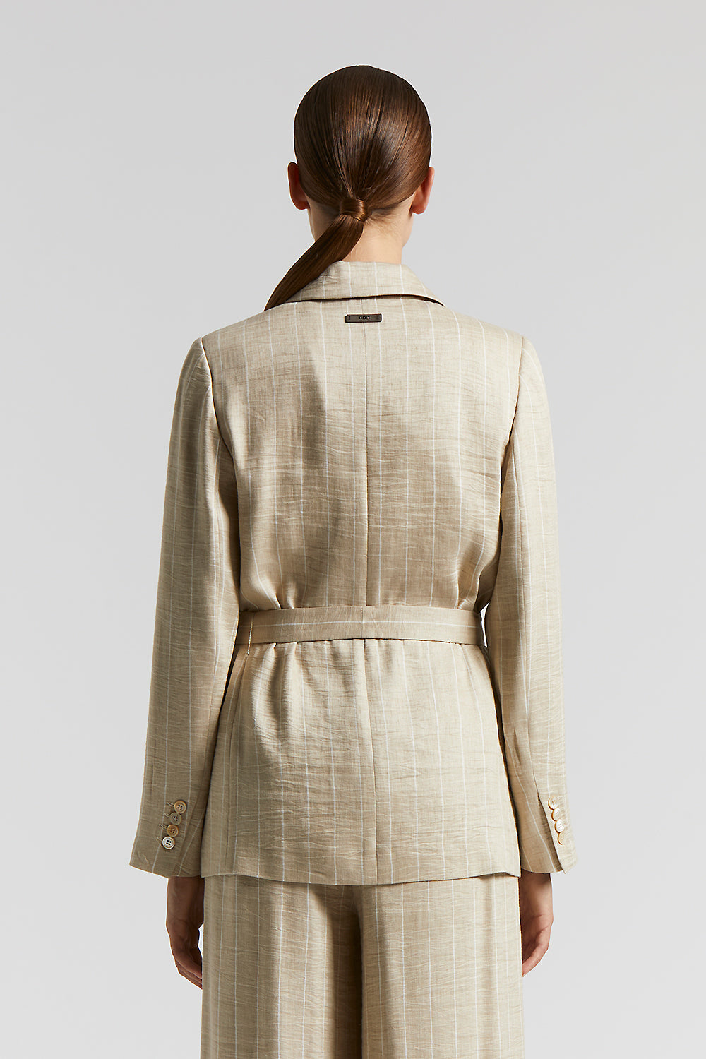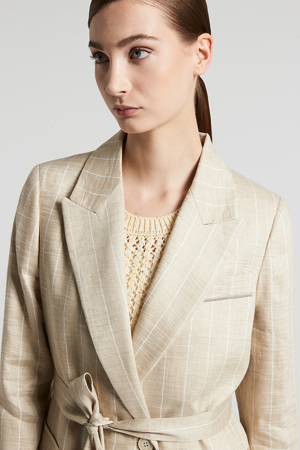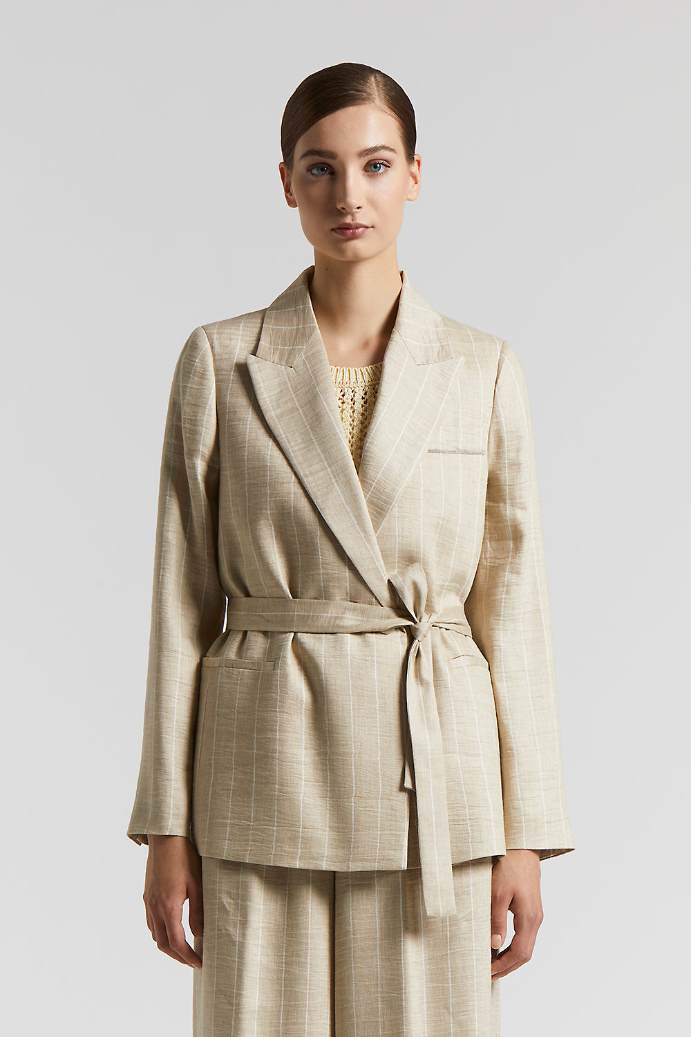 Peserico – Pinstripe blazer with belt and Punto Luce – Amber beige