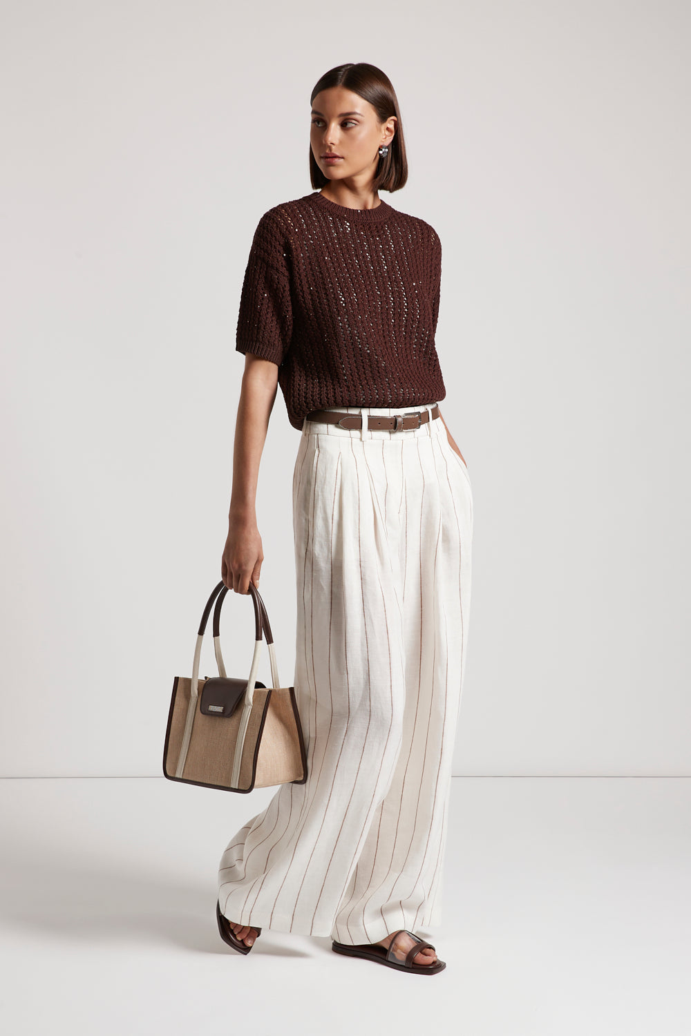 Peserico – Pinstripe linen palazzo trousers – Tobacco