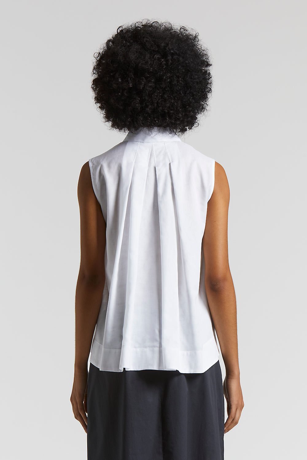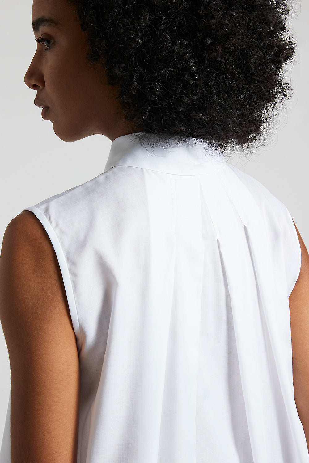 The Punto Luce detail on the breast patch pocket gives a touch of sparkle, while the pleated motif on the back neckline provides gentle movement.