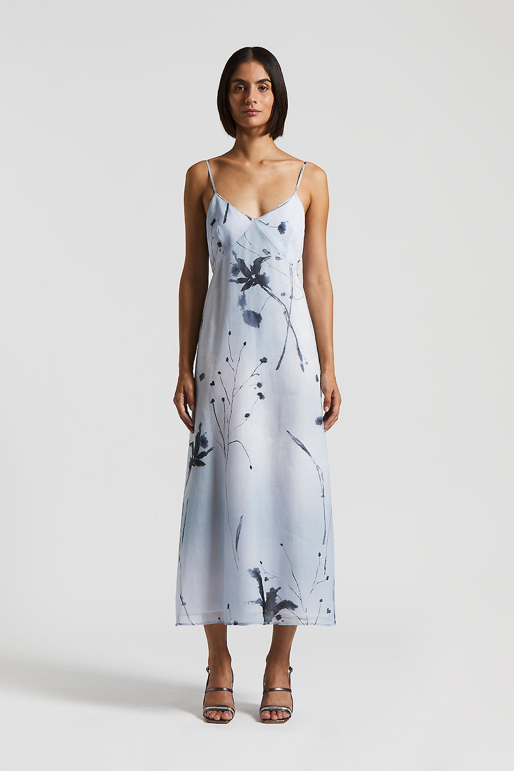 Made of lightweight printed tencel and ramie voile, this long slip dress is feminine and elegant.