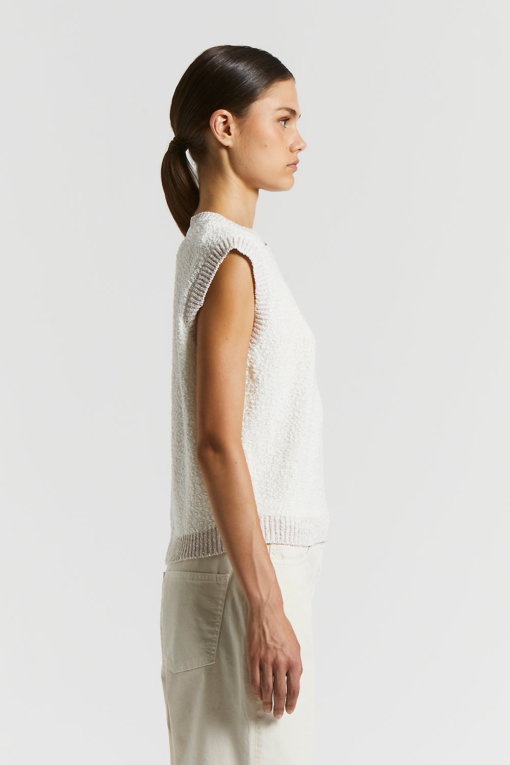 Lurex ribbing around the neck, armholes and hem adds a touch of sparkle, creating a top with a relaxed, contemporary fit.
