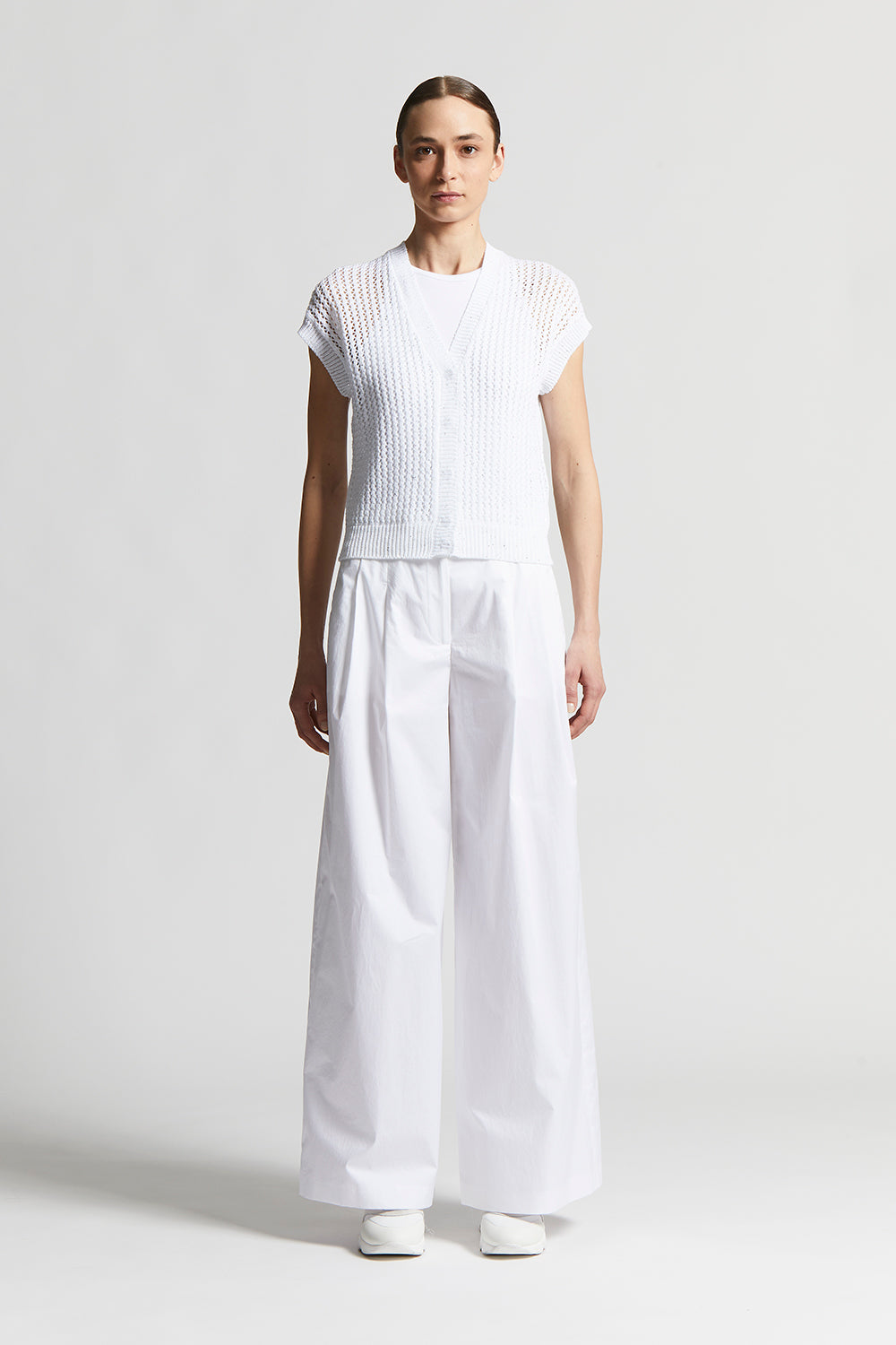Discreet elegance and light texture characterise this pure cotton cordonett cardigan.