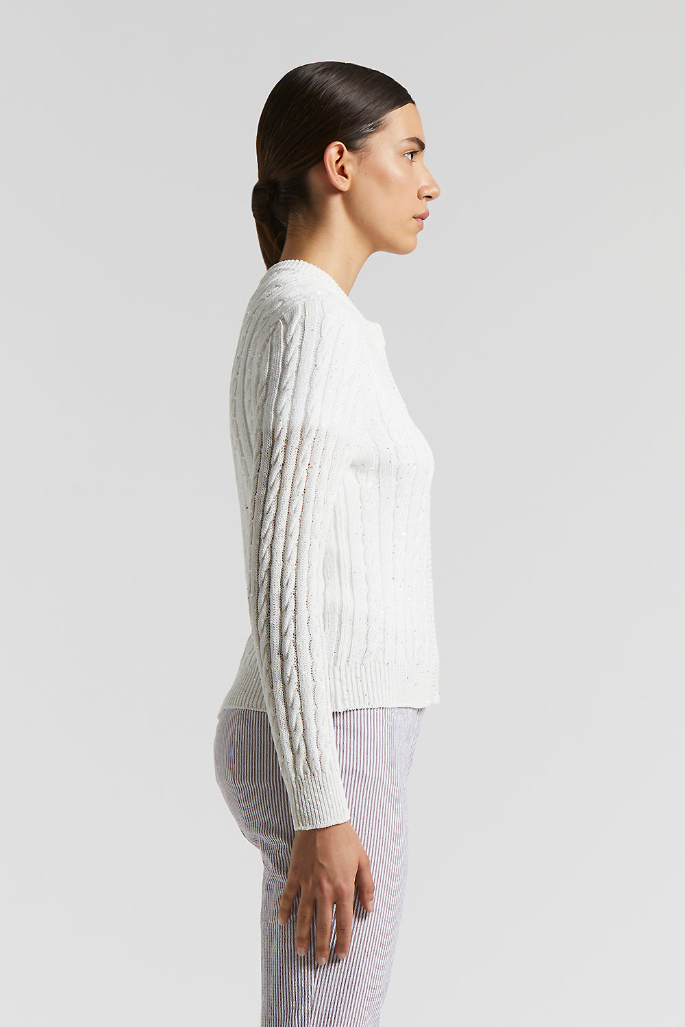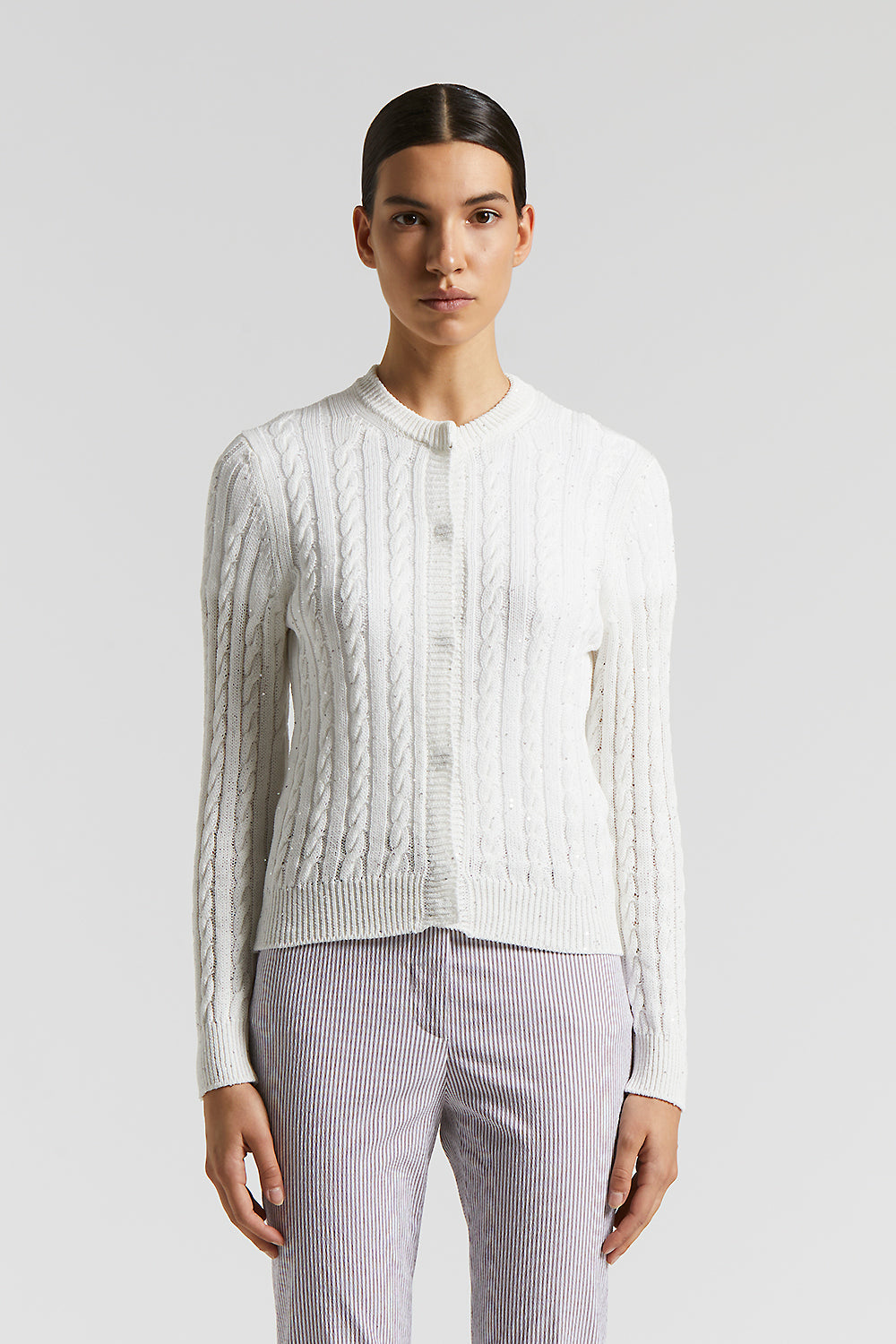 Peserico – Pure cotton cordonett cardigan with sequins – Cloud white
