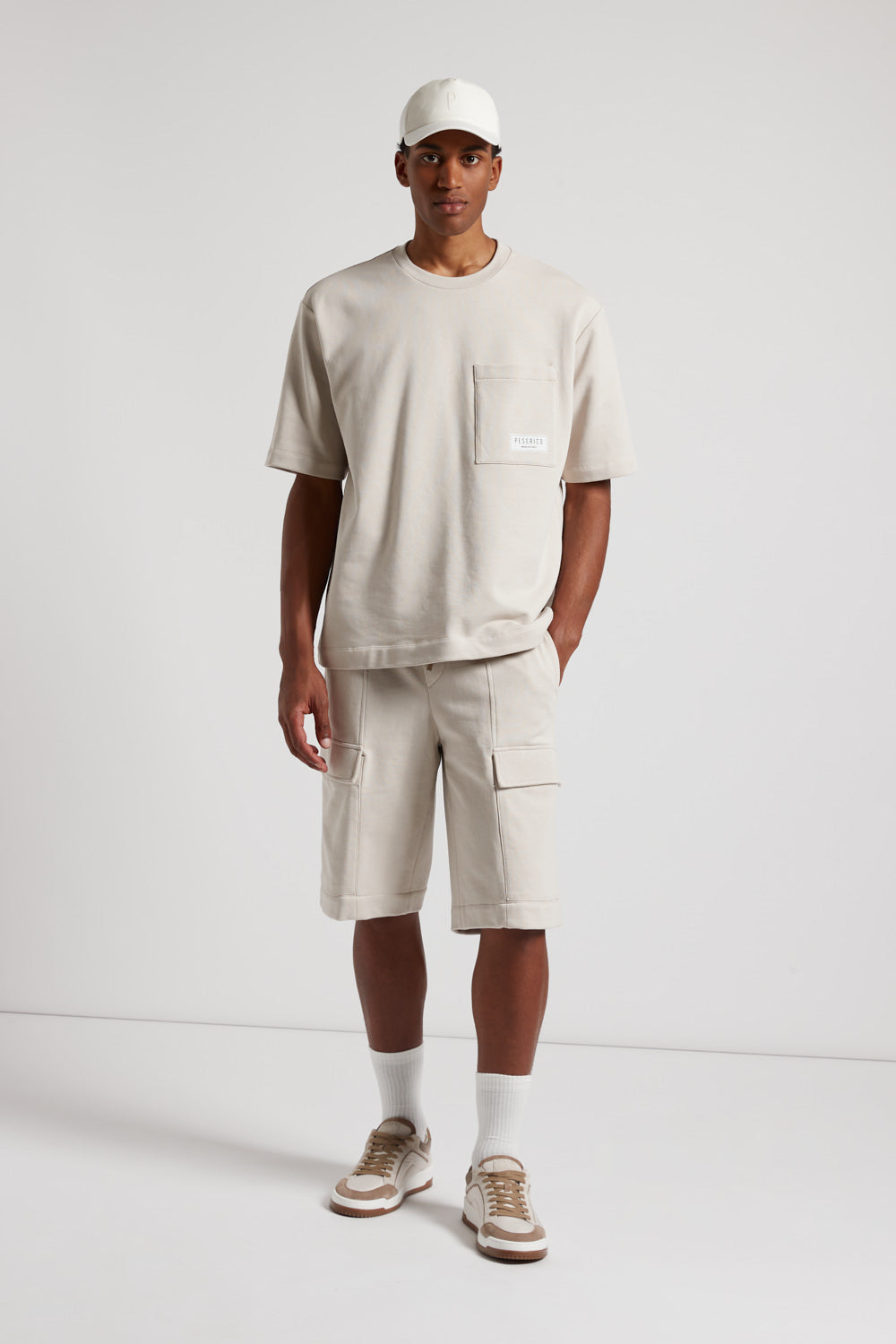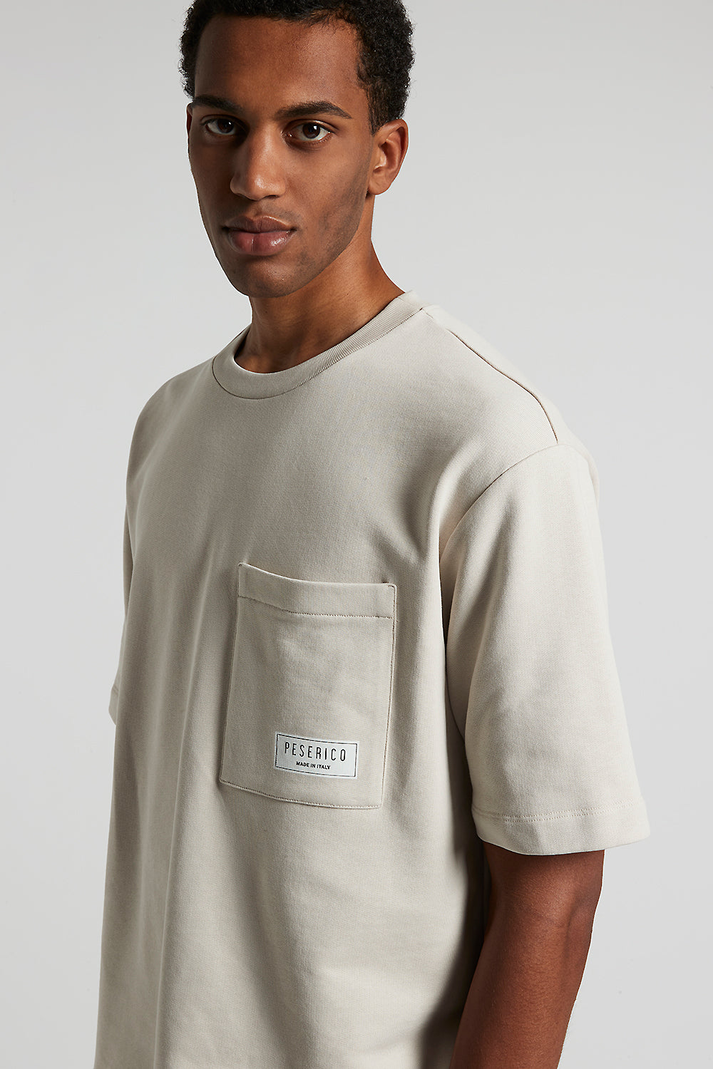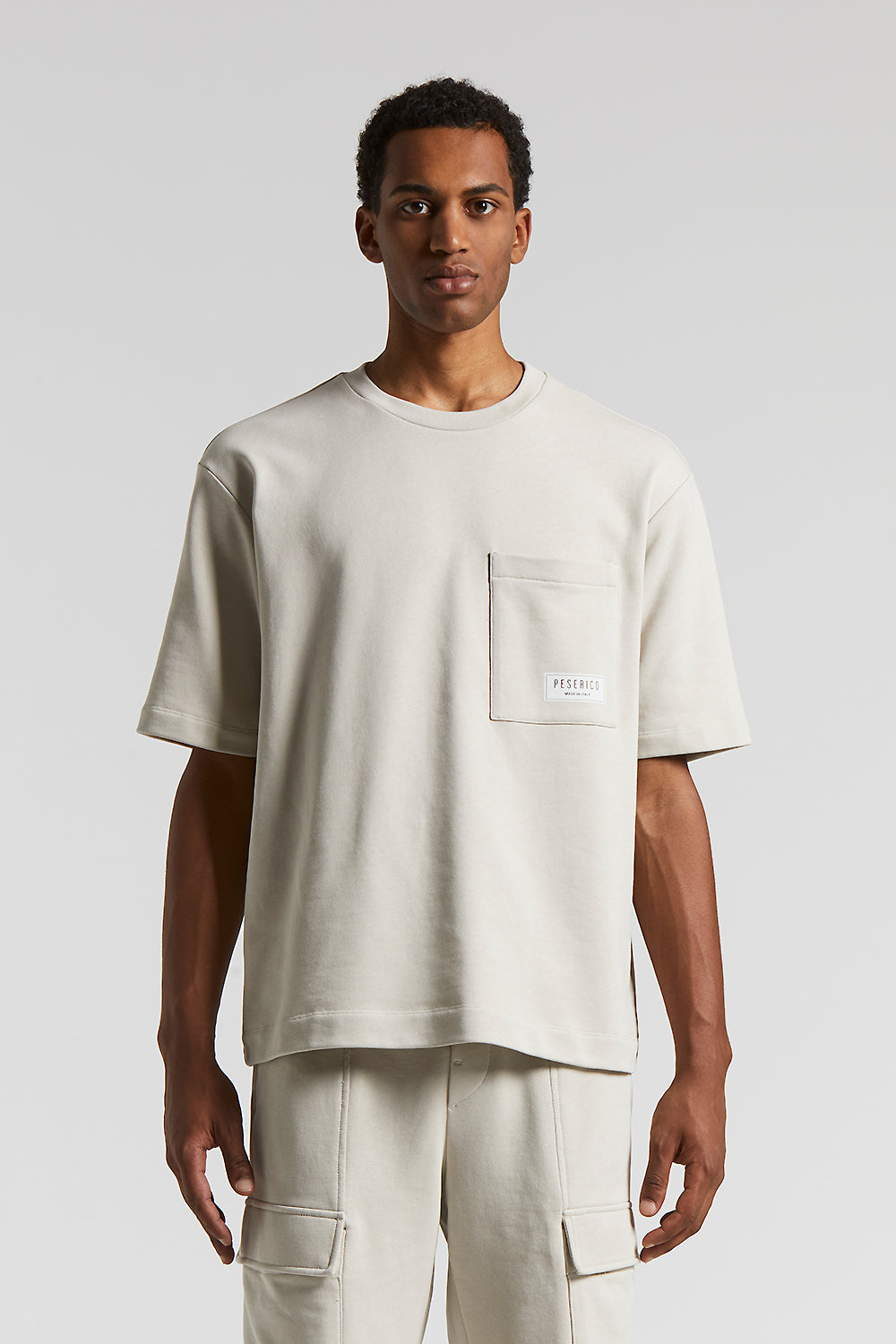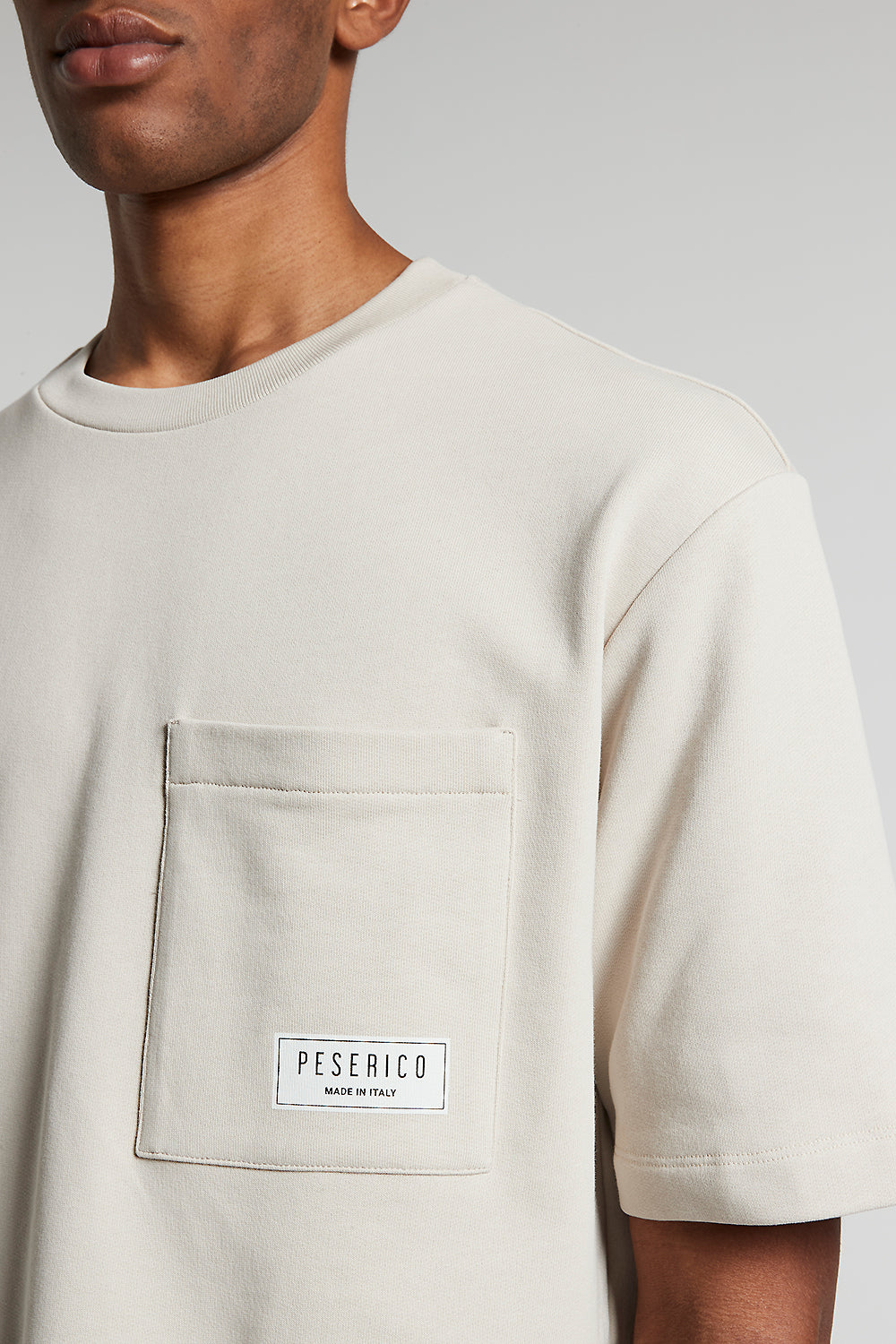 Peserico – Pure cotton French terry fleece t-shirt – Dunes