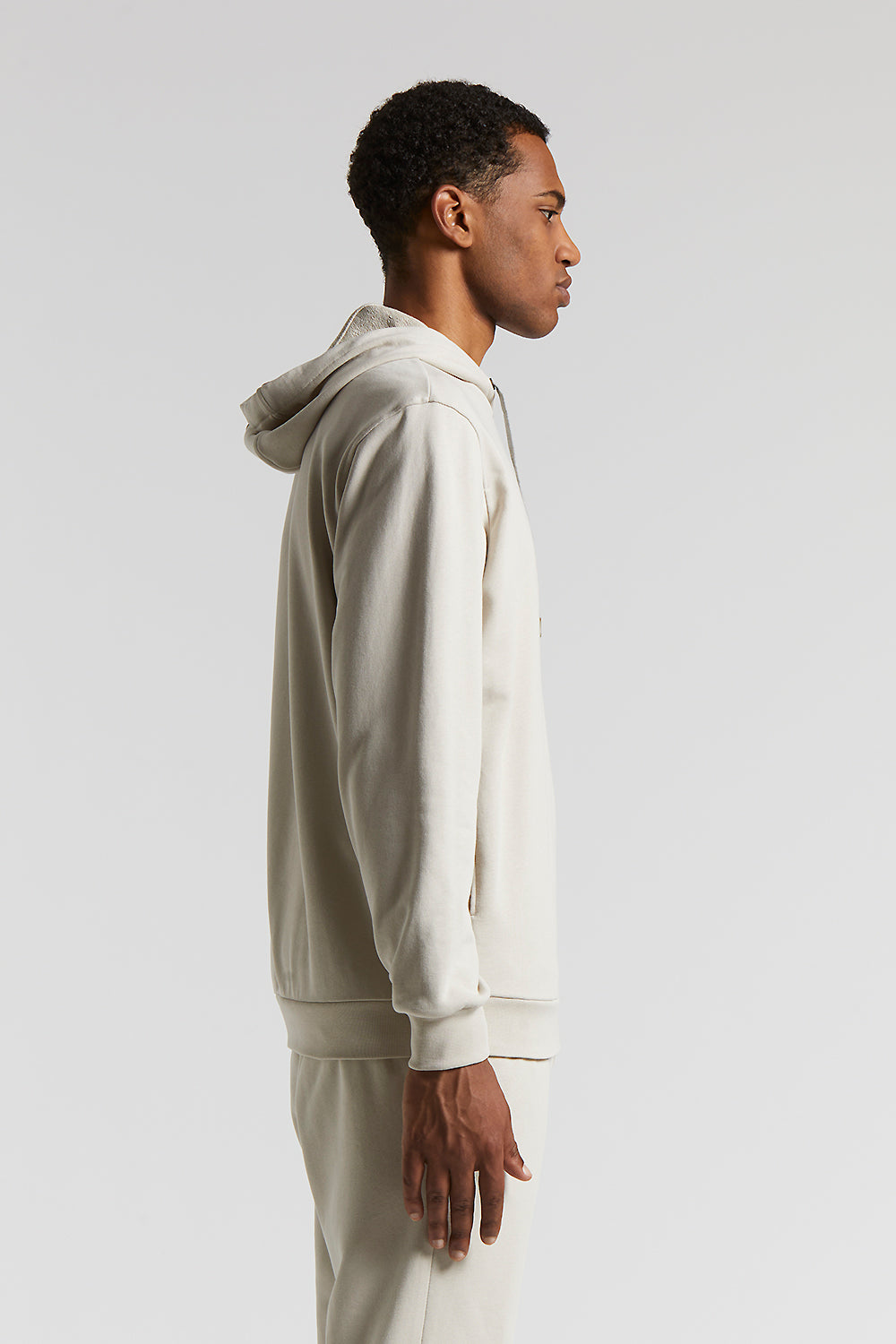 This hoodie with tricot drawstring is a versatile piece that does not forgo quality. Made of soft, pure cotton French terry fleece, it offers a warm and breathable feel. Ideal for every season.