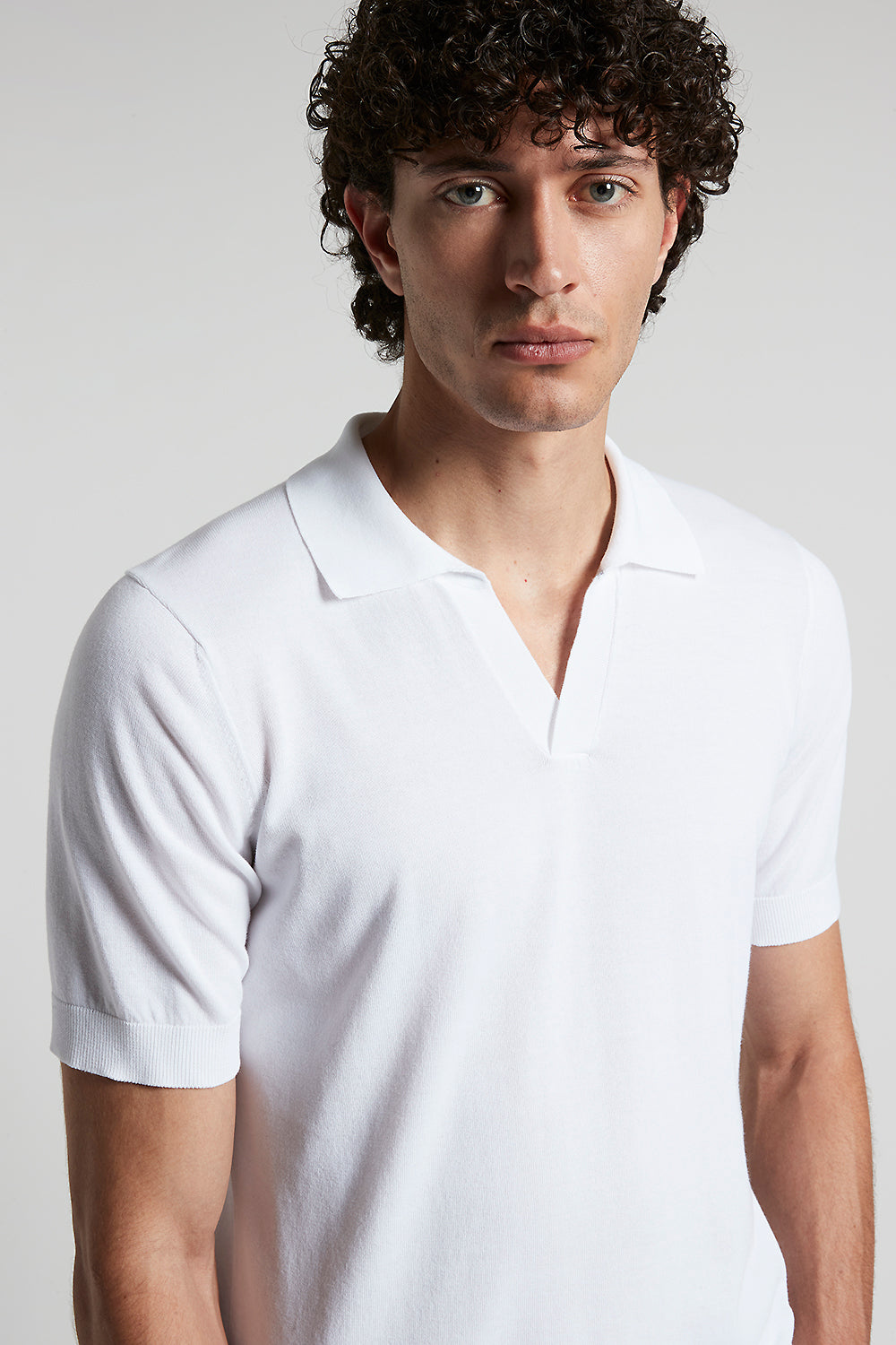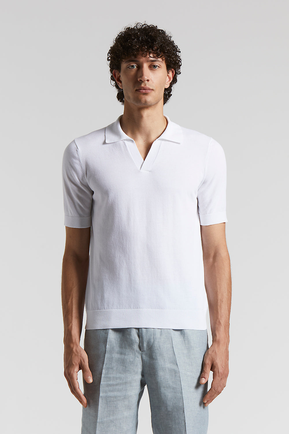 This polo shirt is in pure cotton yarn knitted in stocking stitch, which gives a light structure and a texture that’s soft to the touch.