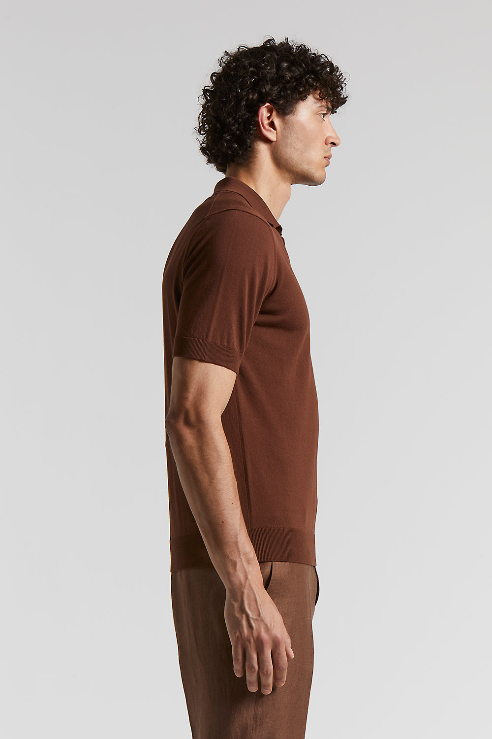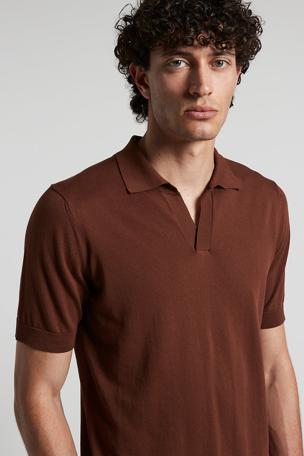 This polo shirt is in pure cotton yarn knitted in stocking stitch, which gives a light structure and a texture that’s soft to the touch.