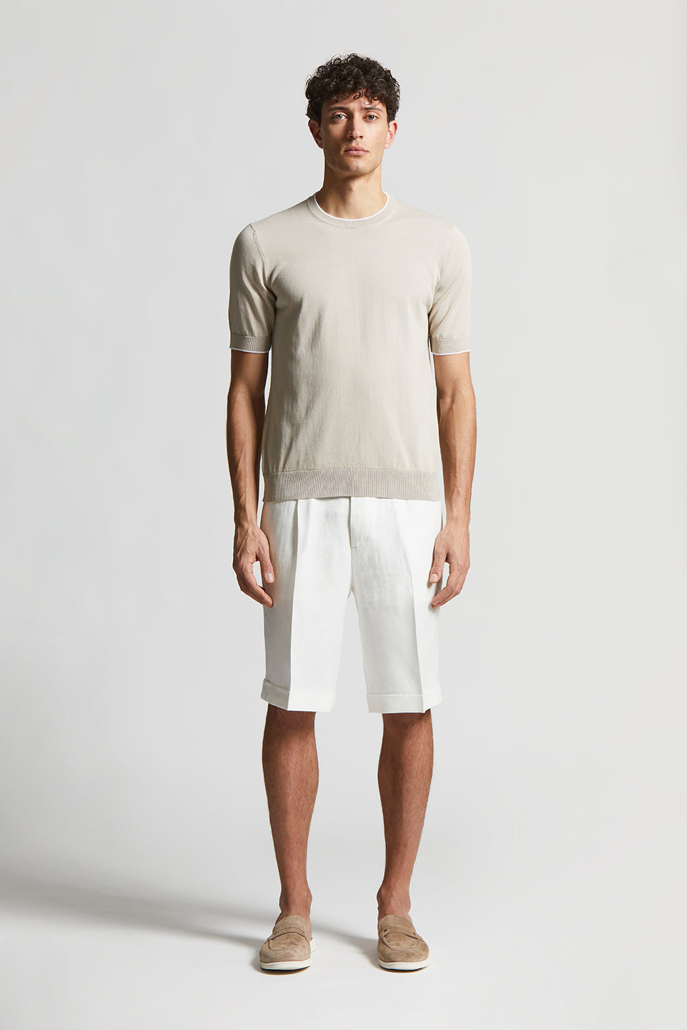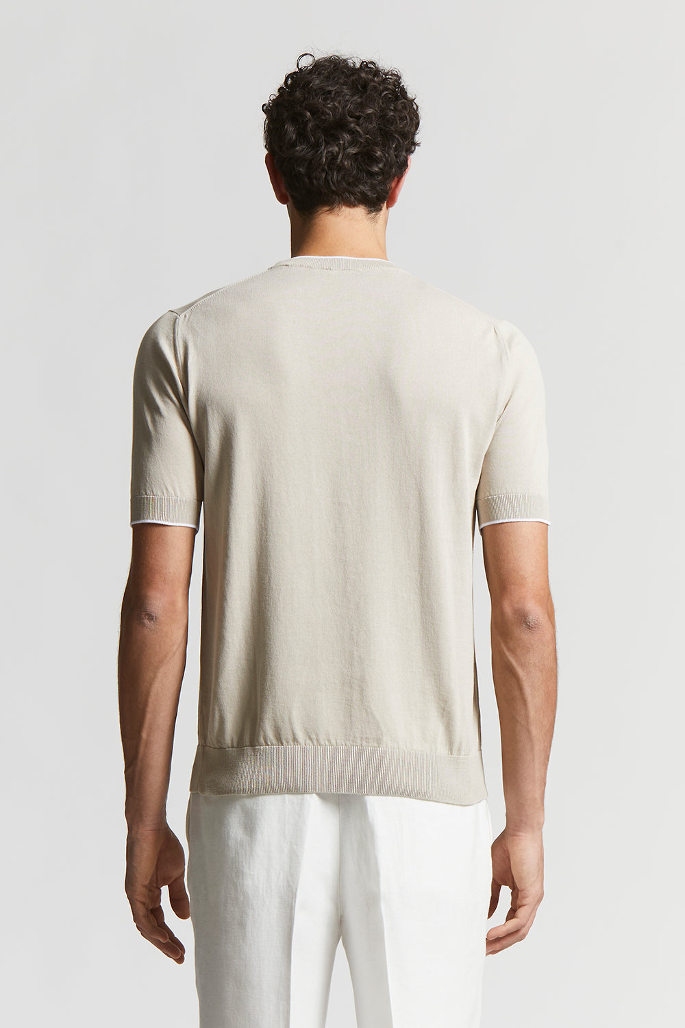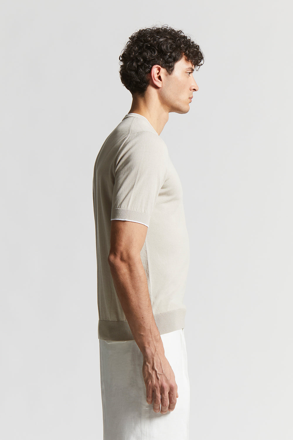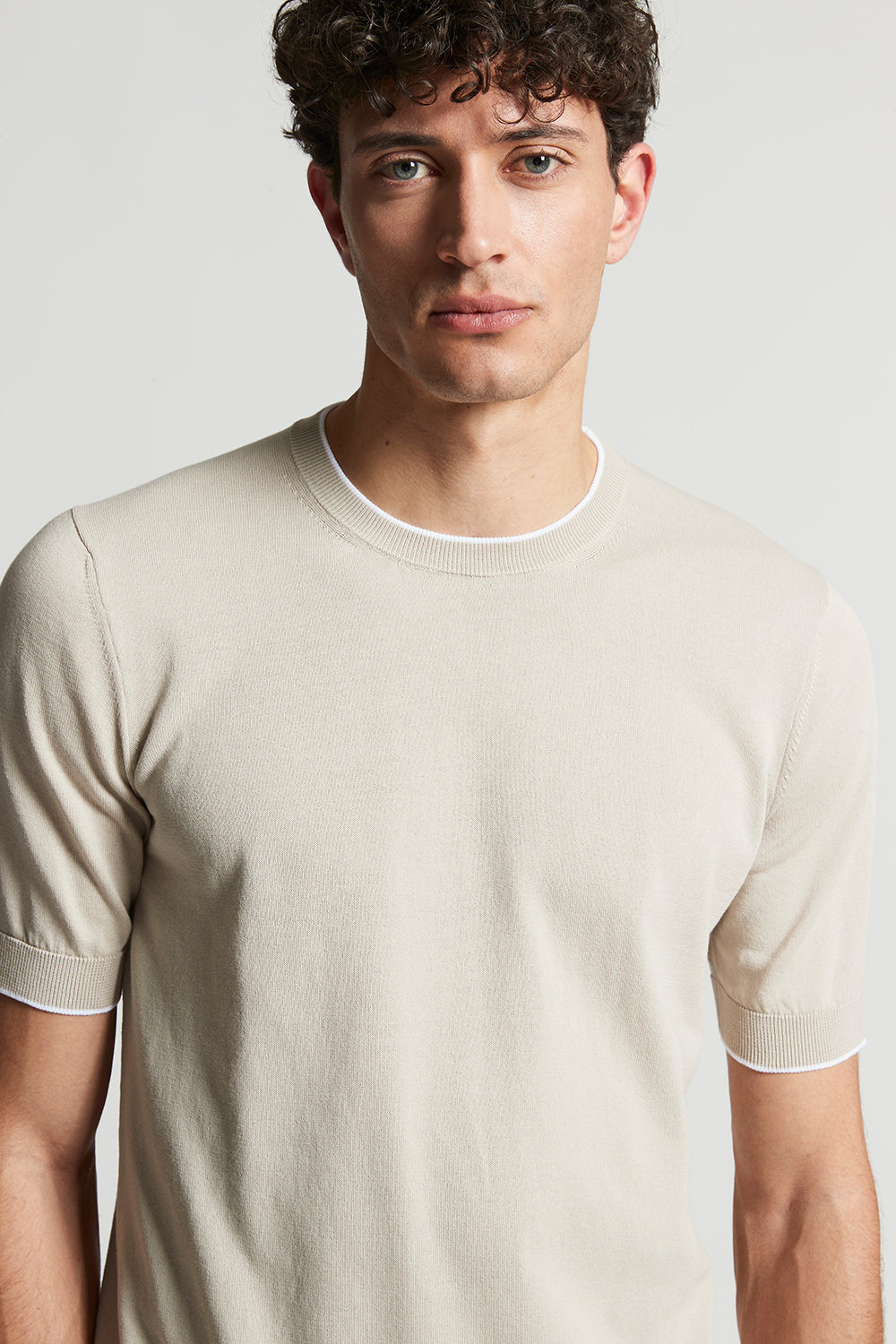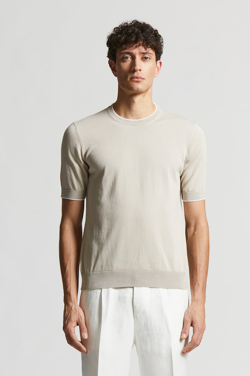 T-shirt in fine pure cotton yarn knitted in stocking stitch to ensure comfort and freshness.