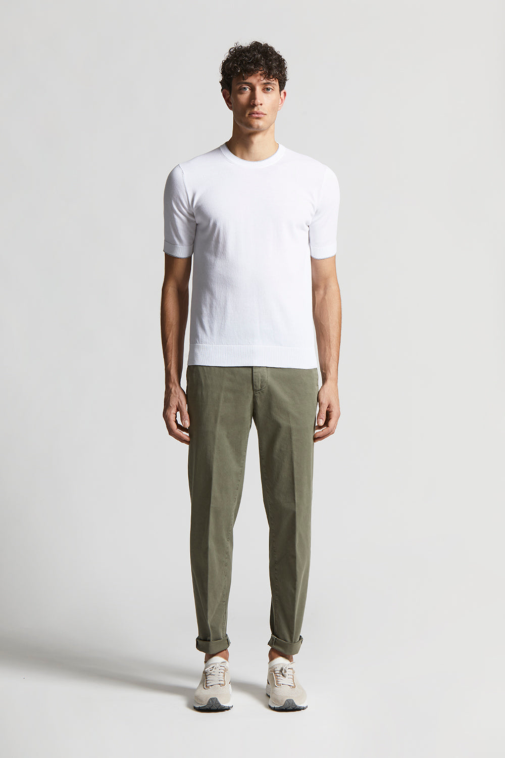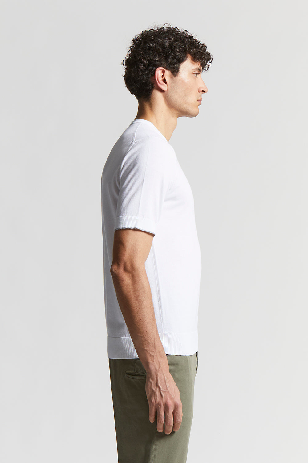 T-shirt in fine pure cotton yarn knitted in stocking stitch to ensure comfort and freshness.