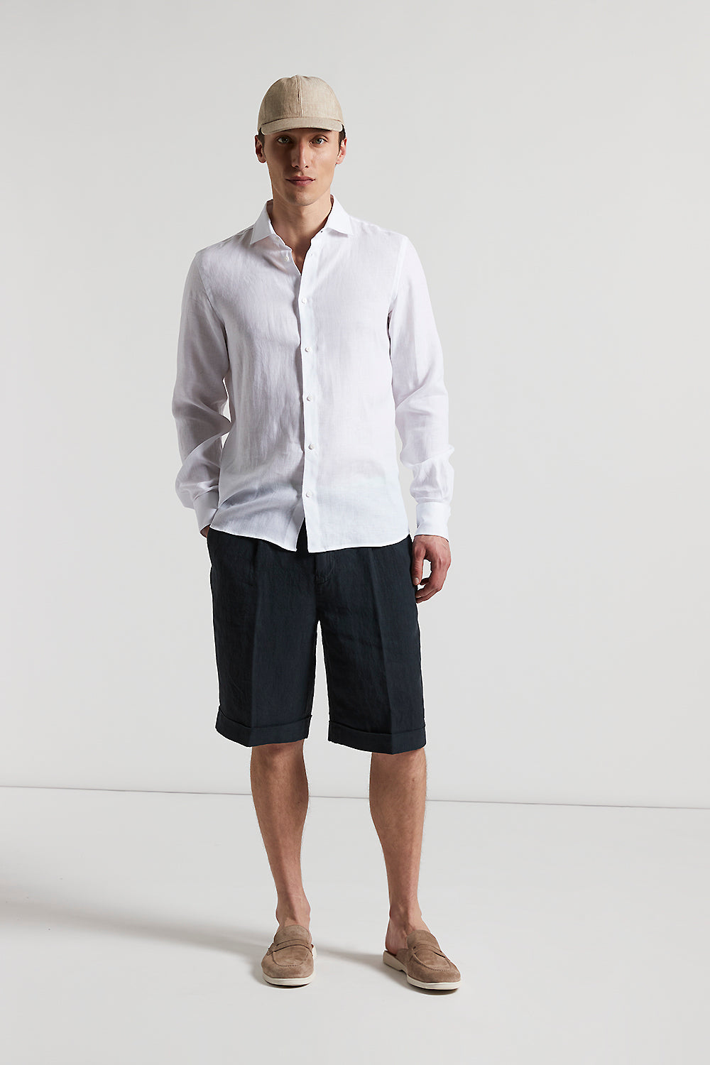 Made in garment dyed pure linen, a fabric that stands out for its natural freshness and smooth surface.