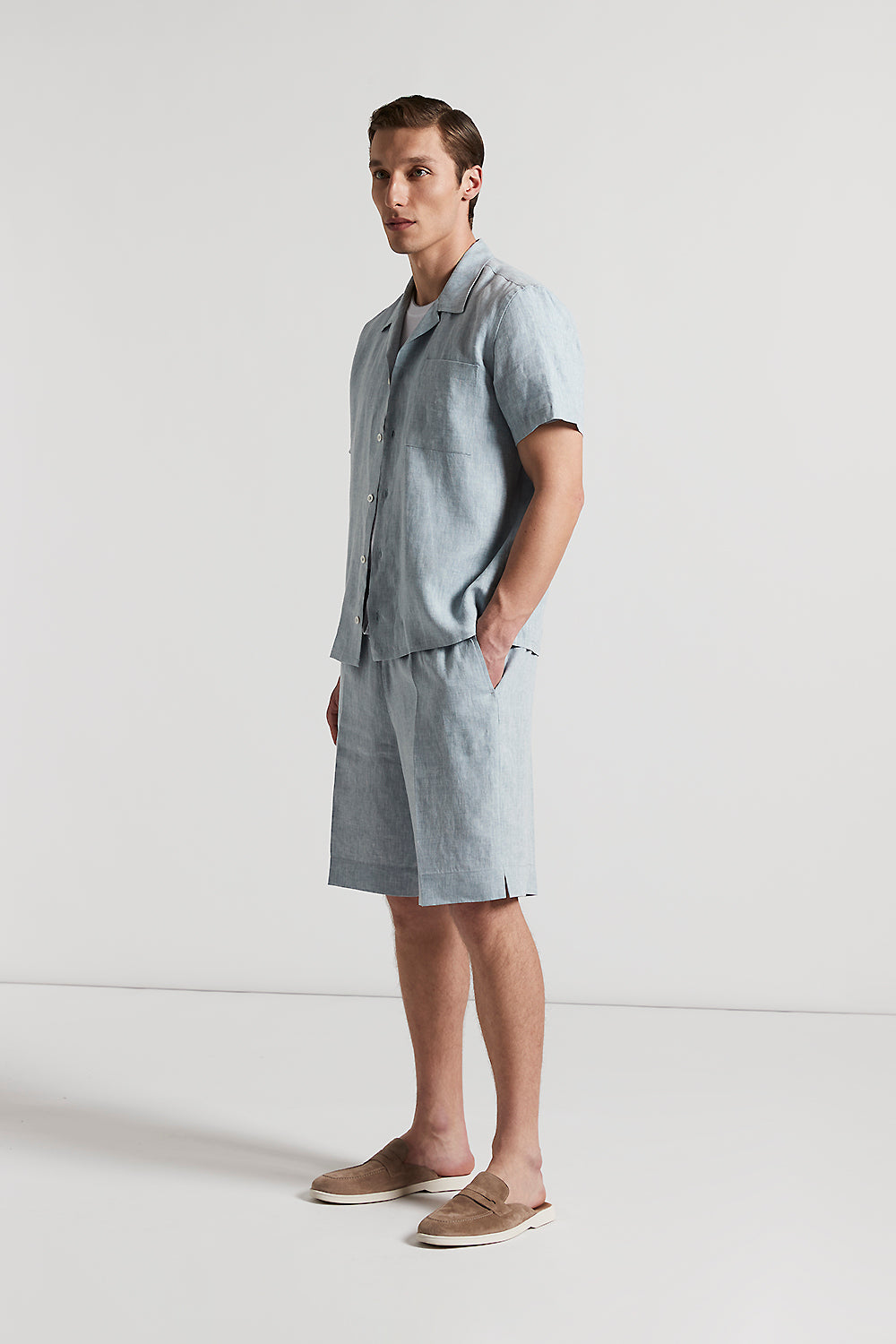 These bermuda shorts in yarn dyed linen evoke the essence of summer with their loose lines and relaxed fit. The elasticated drawstring waist ensures an adjustable fit.