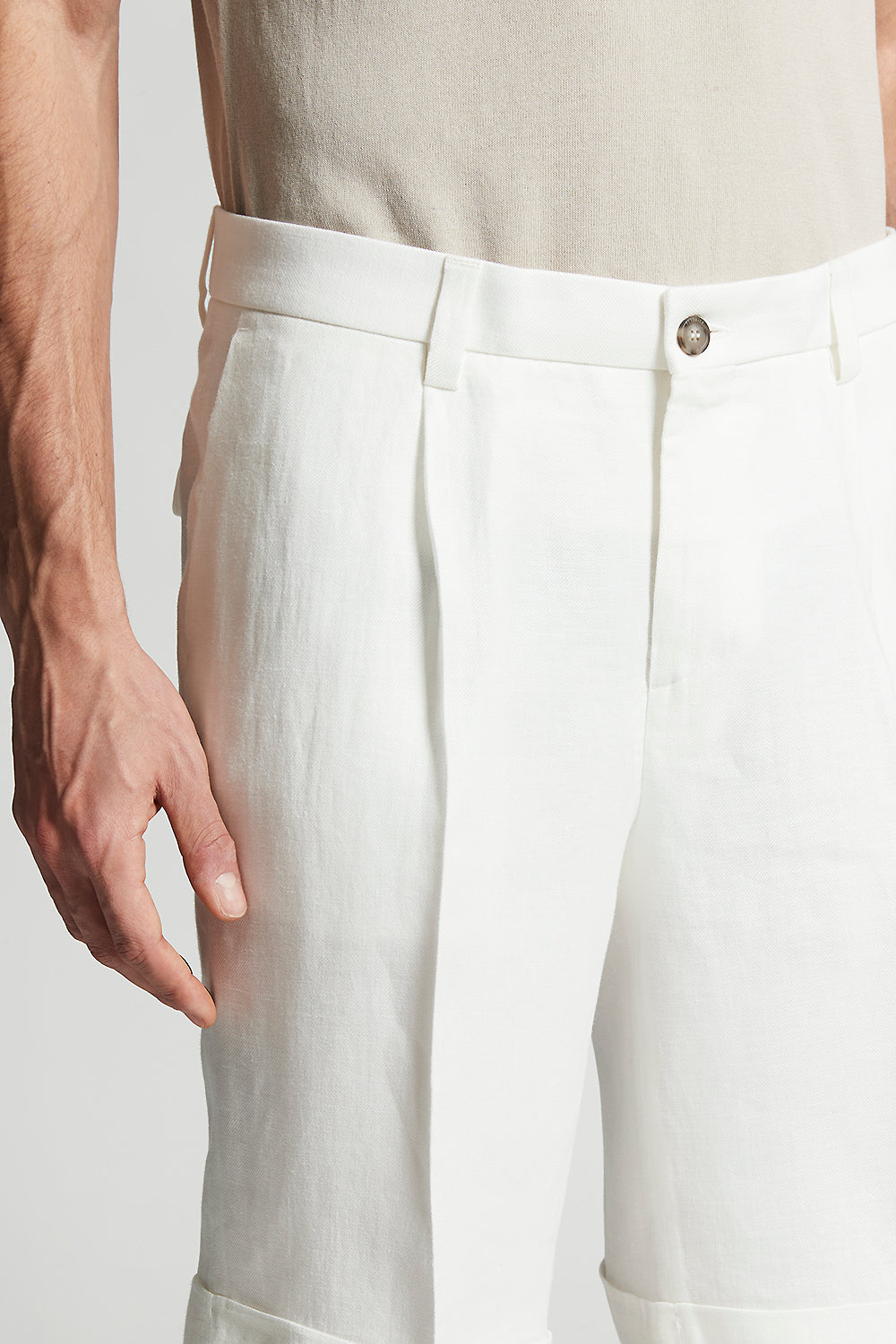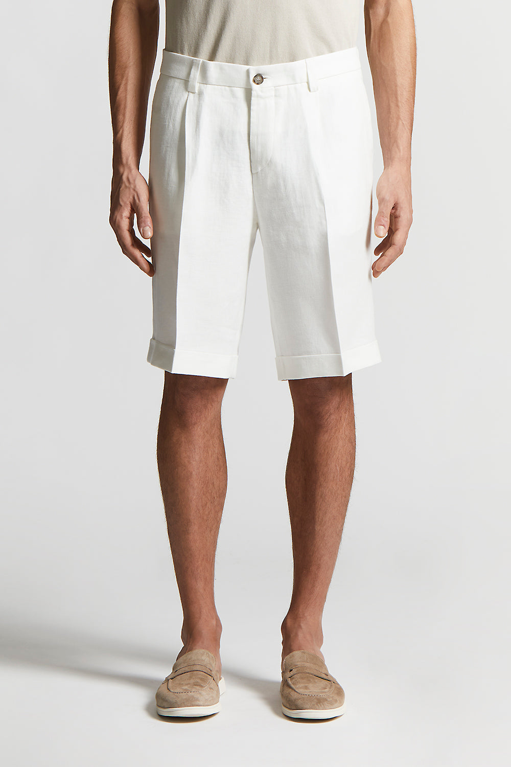 Peserico – Pure linen gabardine Bermuda shorts – Cloud white