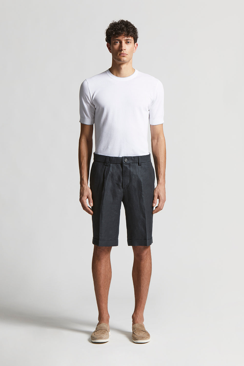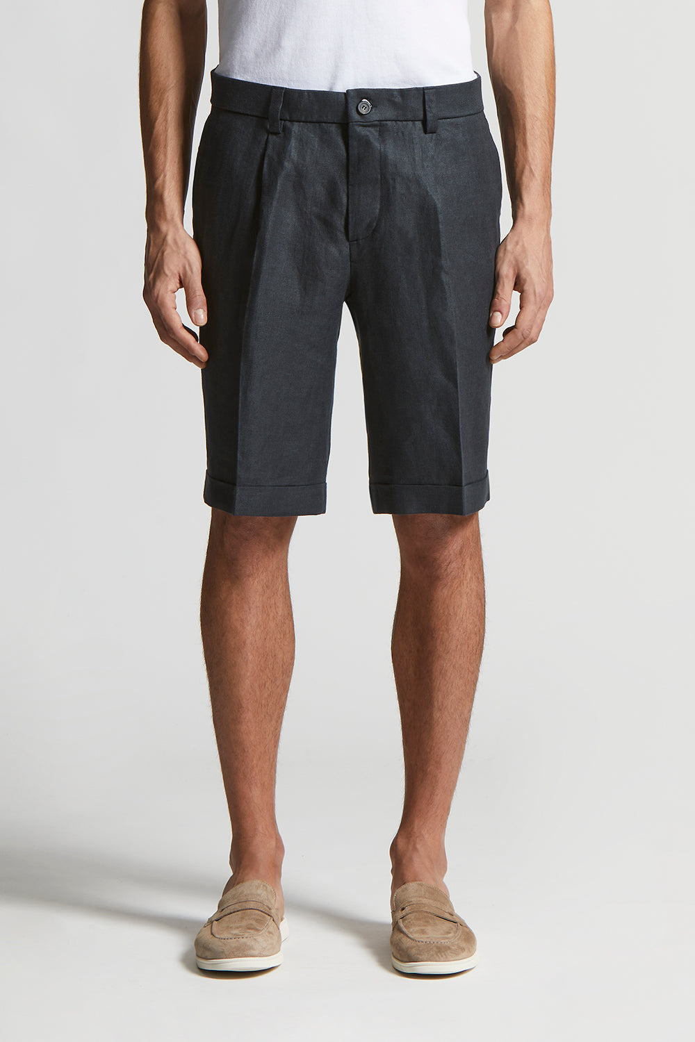 Peserico – Pure linen gabardine Bermuda shorts – Space blue