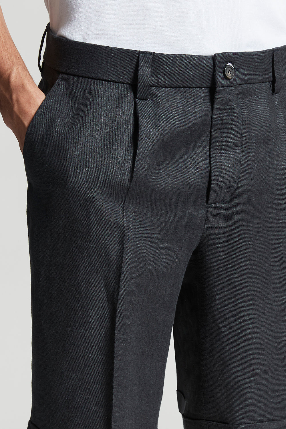 Made in solid colour pure linen gabardine, a fabric that stands out for its natural freshness and smooth surface.