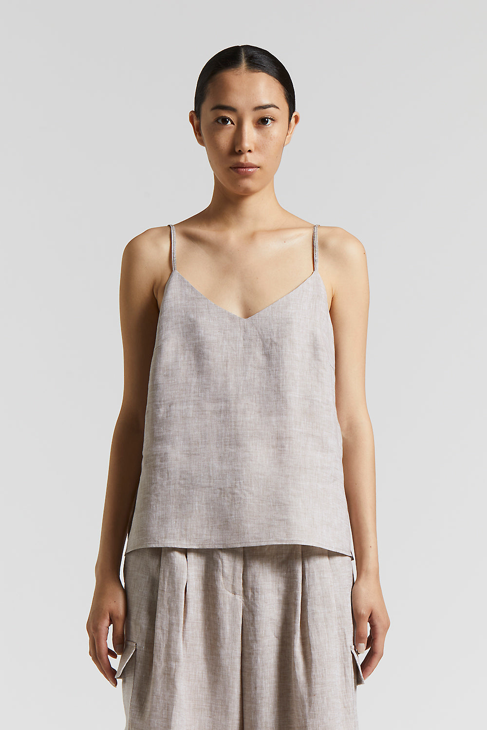 This V-neck top, made of lightweight, cool pure linen, is for warm weather.Narrow straps with Punto Luce detail and delicate side slits add a touch of elegance, while the regular fit ensures comfort …