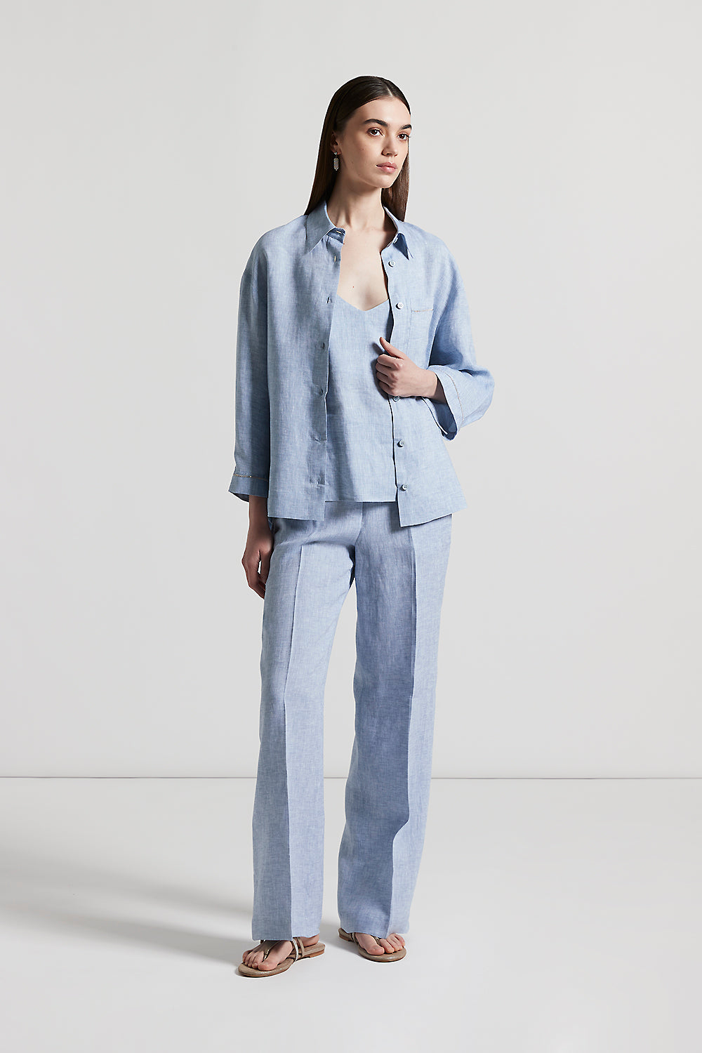 Lghtweight, breathable linen makes this top timeless and versatile, the perfect choice to create both casual and formal outfits.