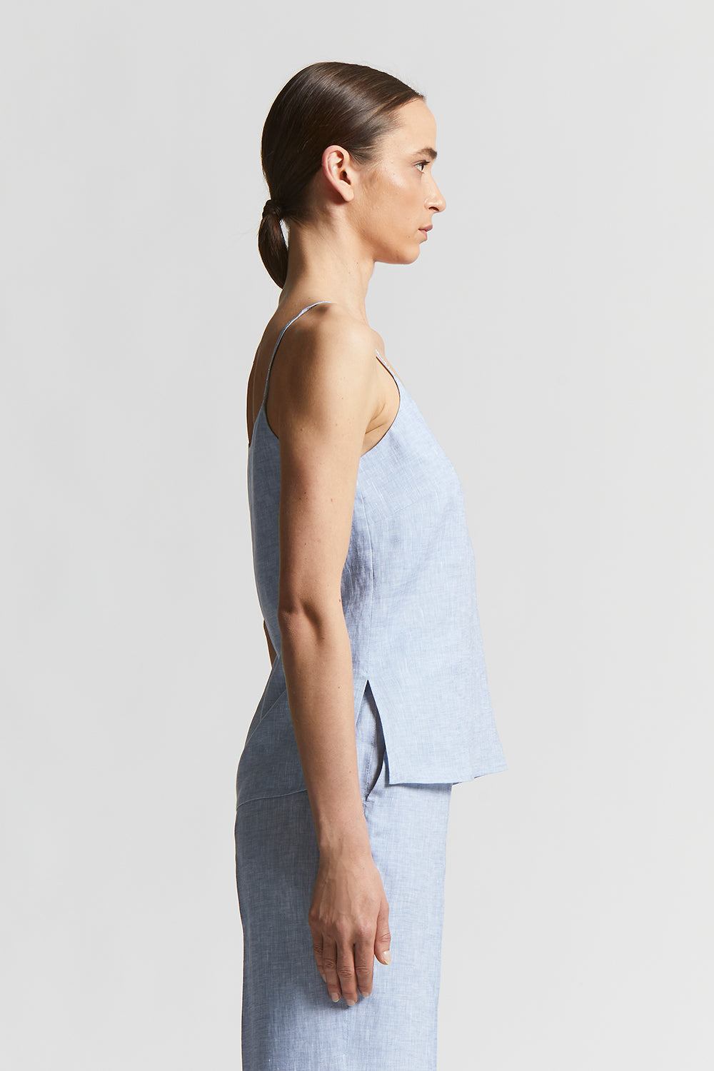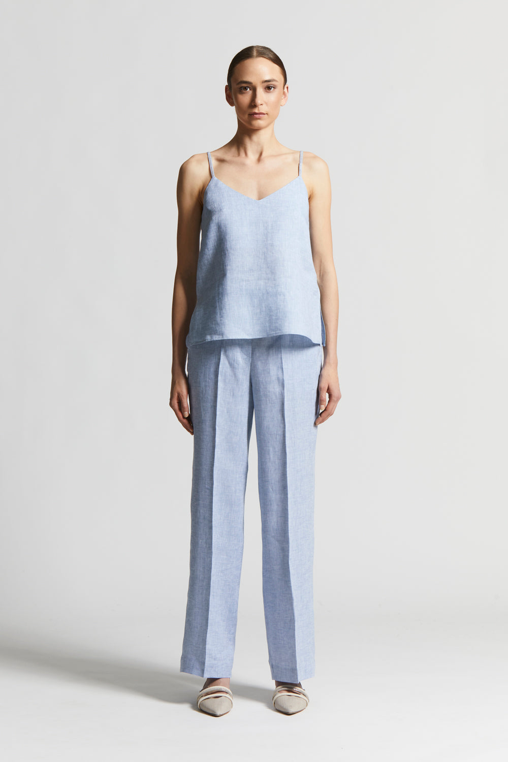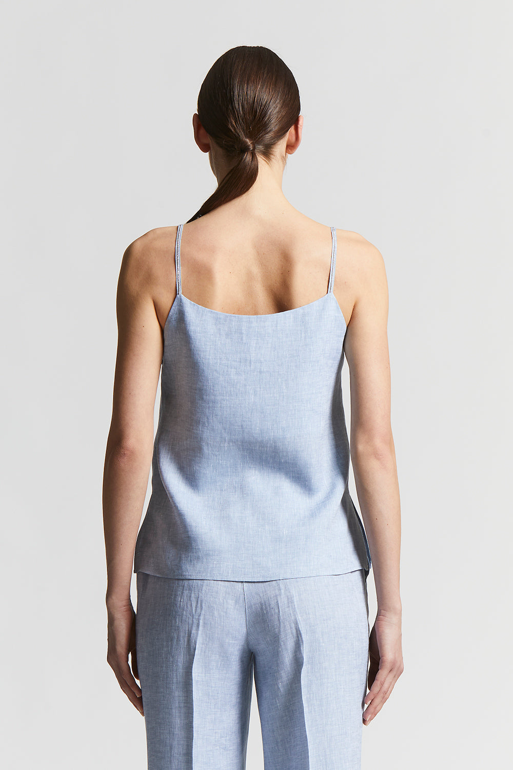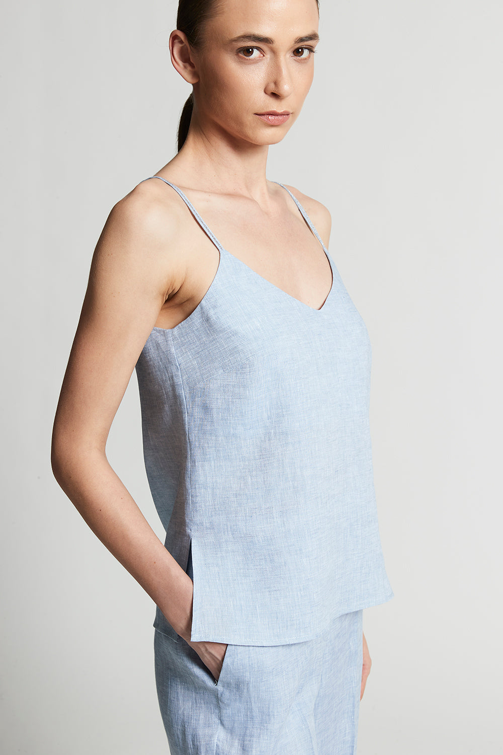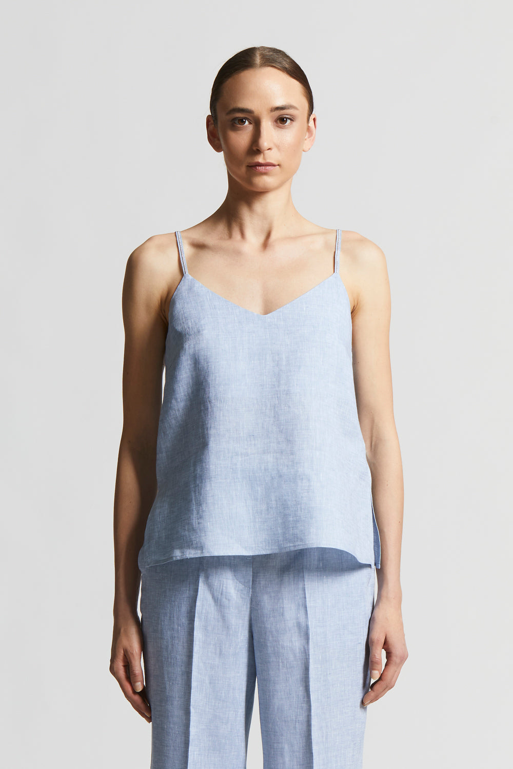 This V-neck top, made of lightweight, cool pure linen, is for warm weather.Narrow straps with Punto Luce detail and delicate side slits add a touch of elegance, while the regular fit ensures comfort …
