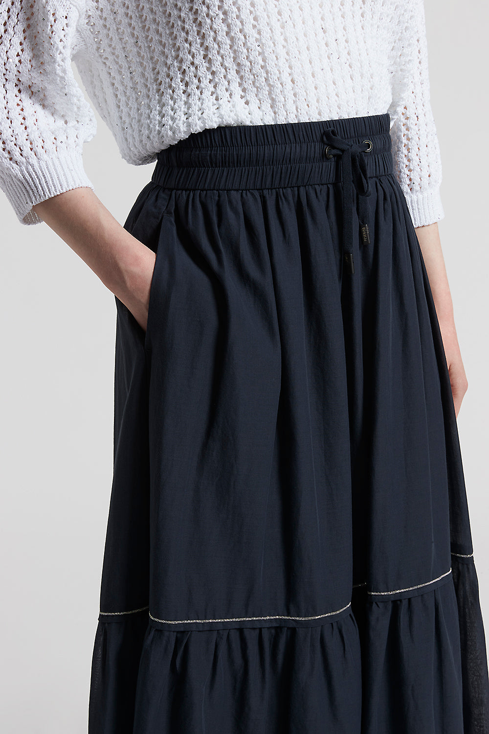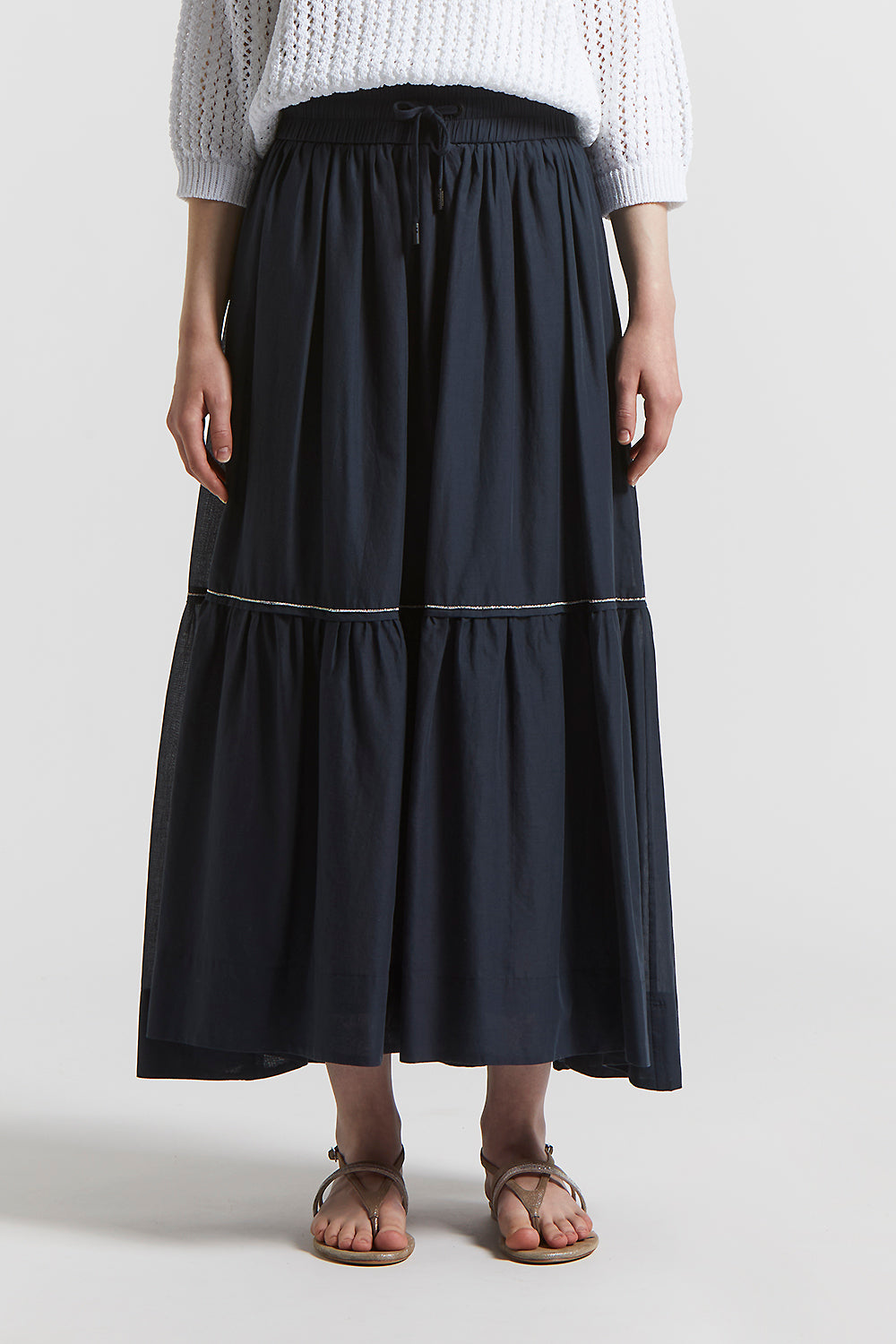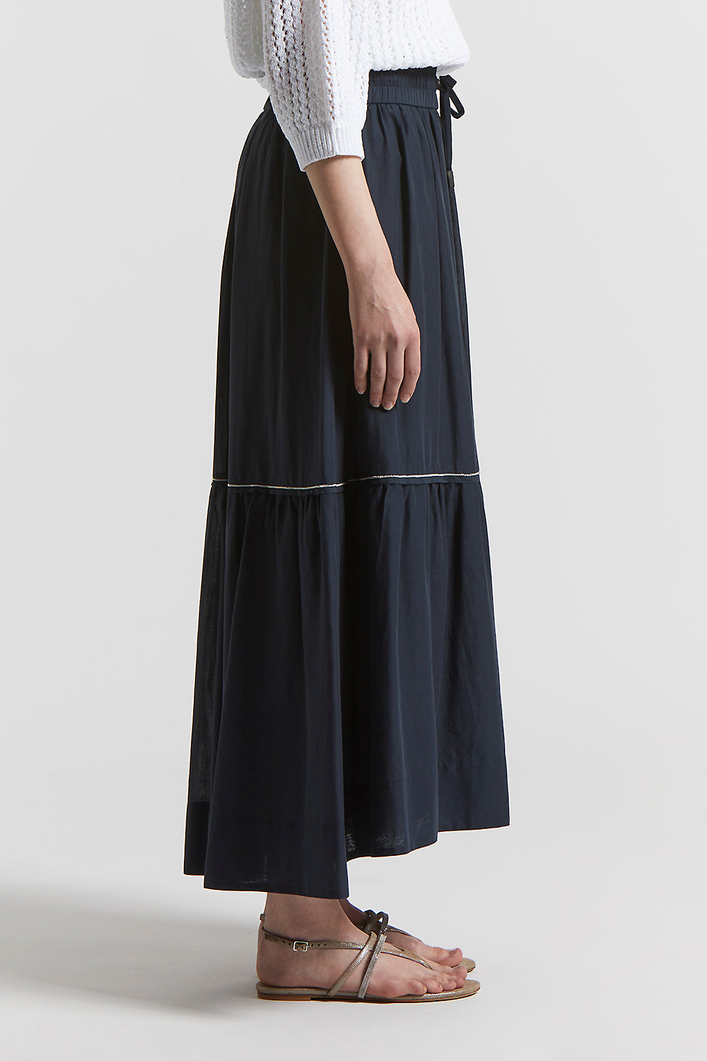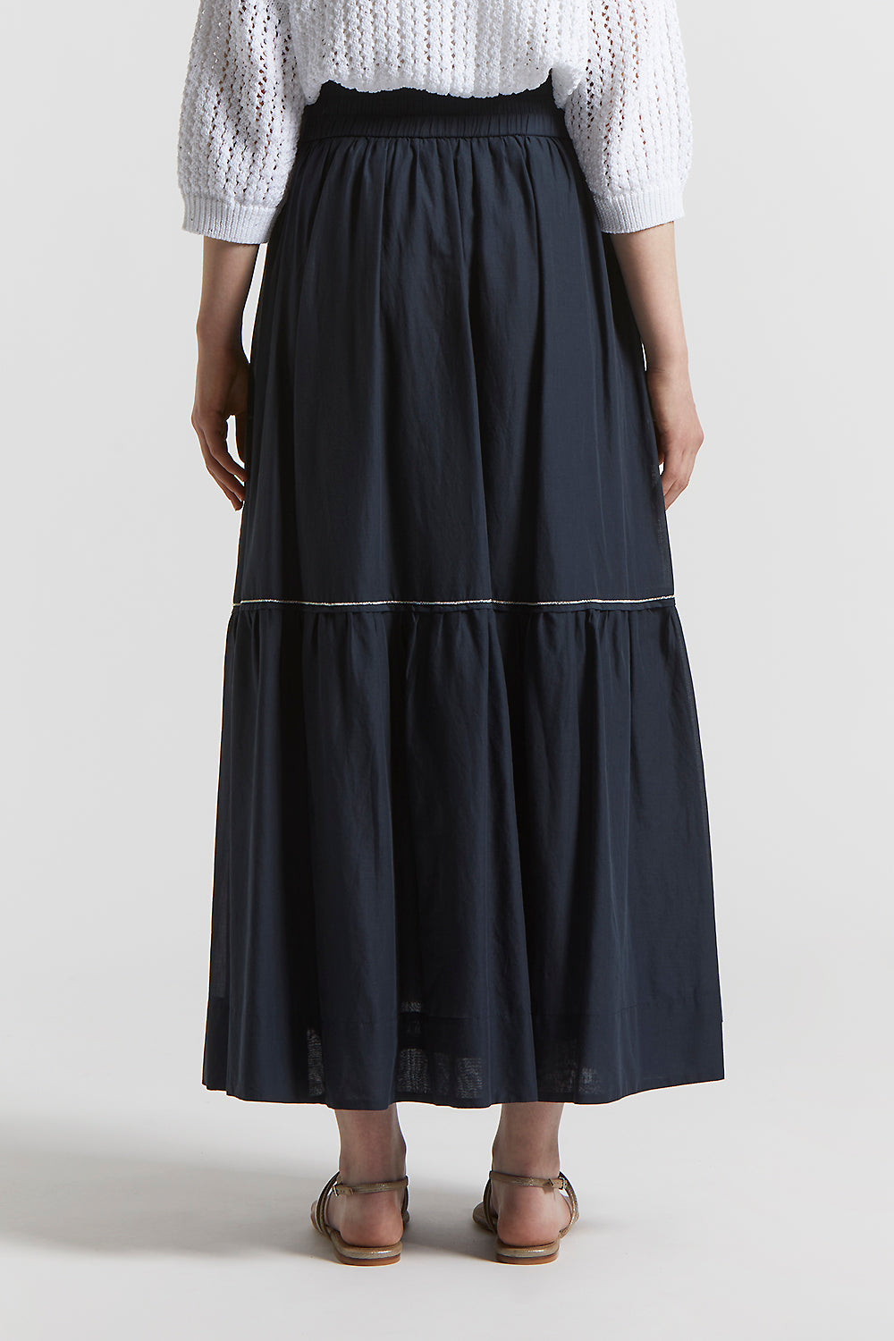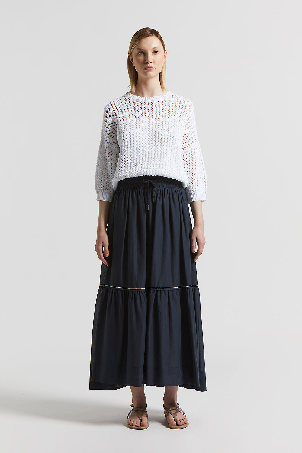 Peserico – Semi-transparent long skirt in pure cotton voile – Space blue
