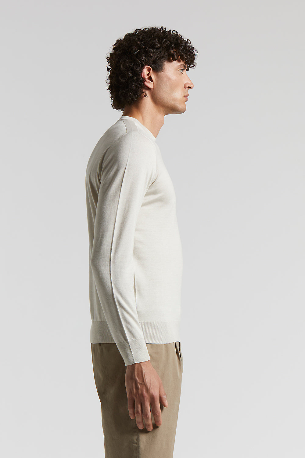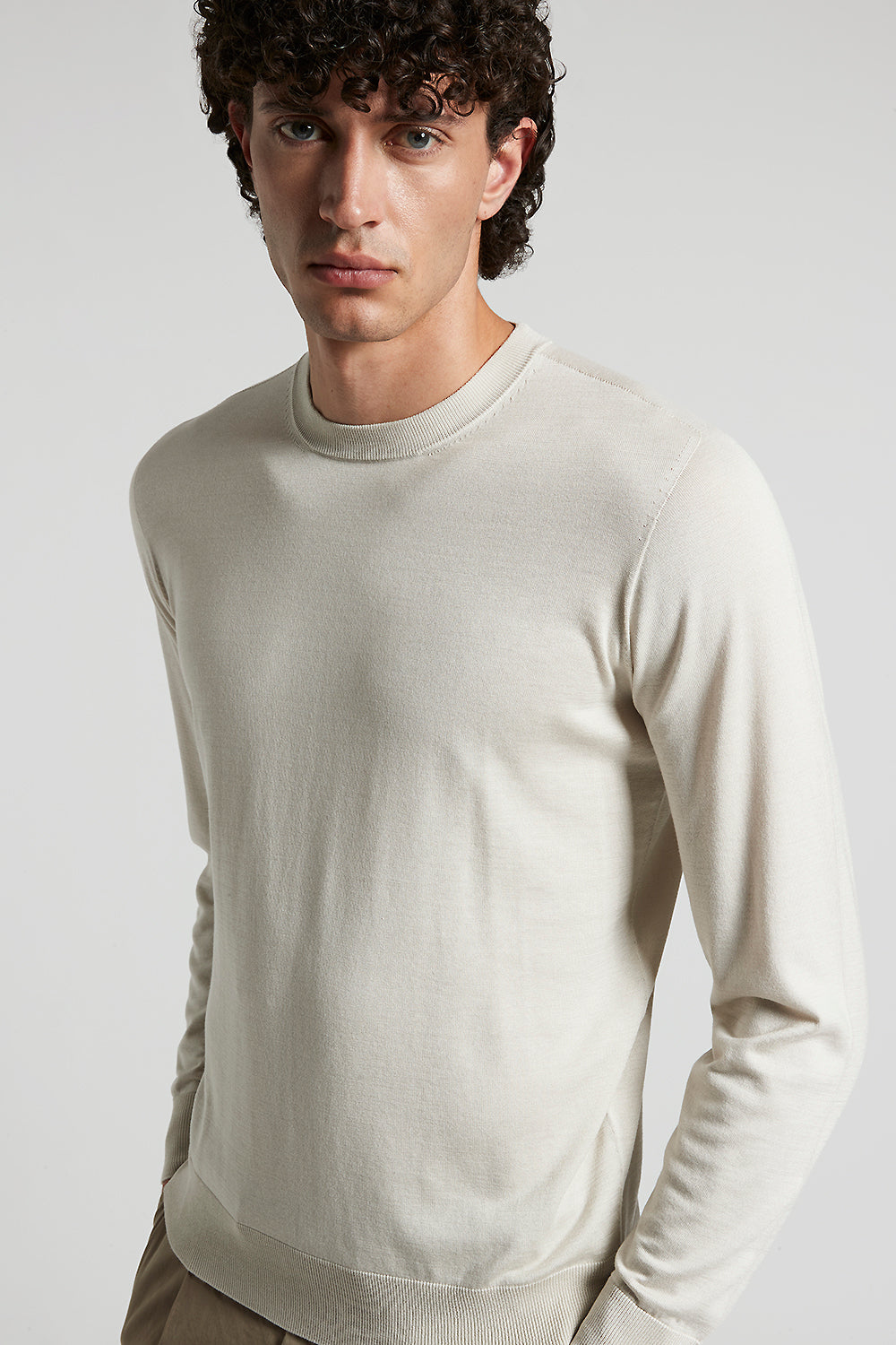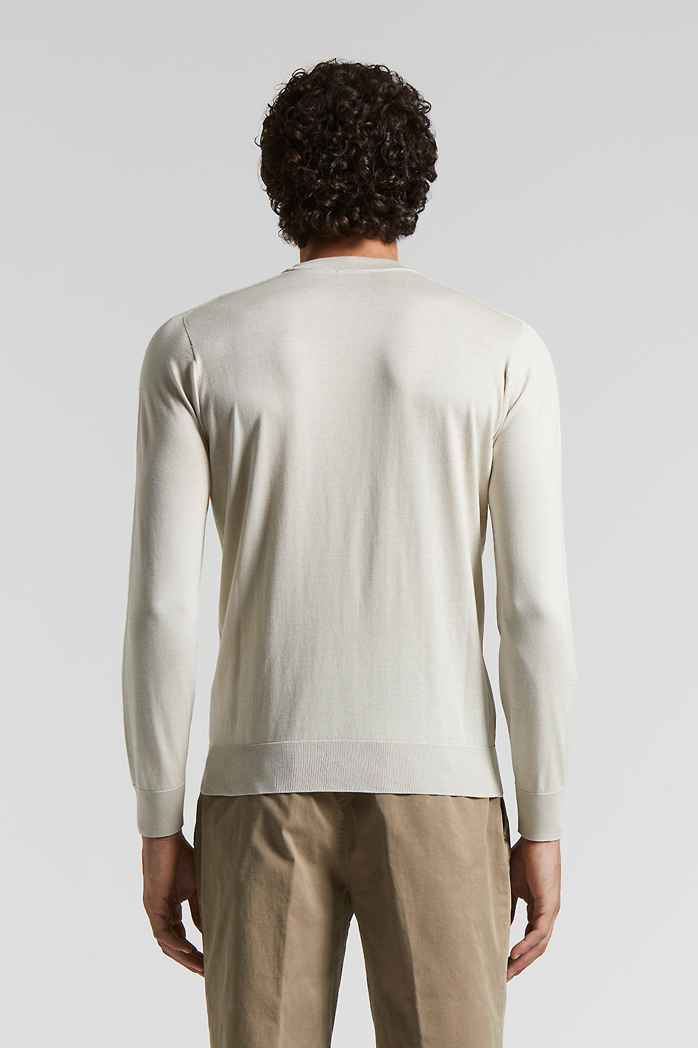 Seamless sweater in silk-cotton yarn knitted in stocking stitch, which gives a soft, refined look. The crewneck and long, set-in sleeves create an elegant, simple silhouette.