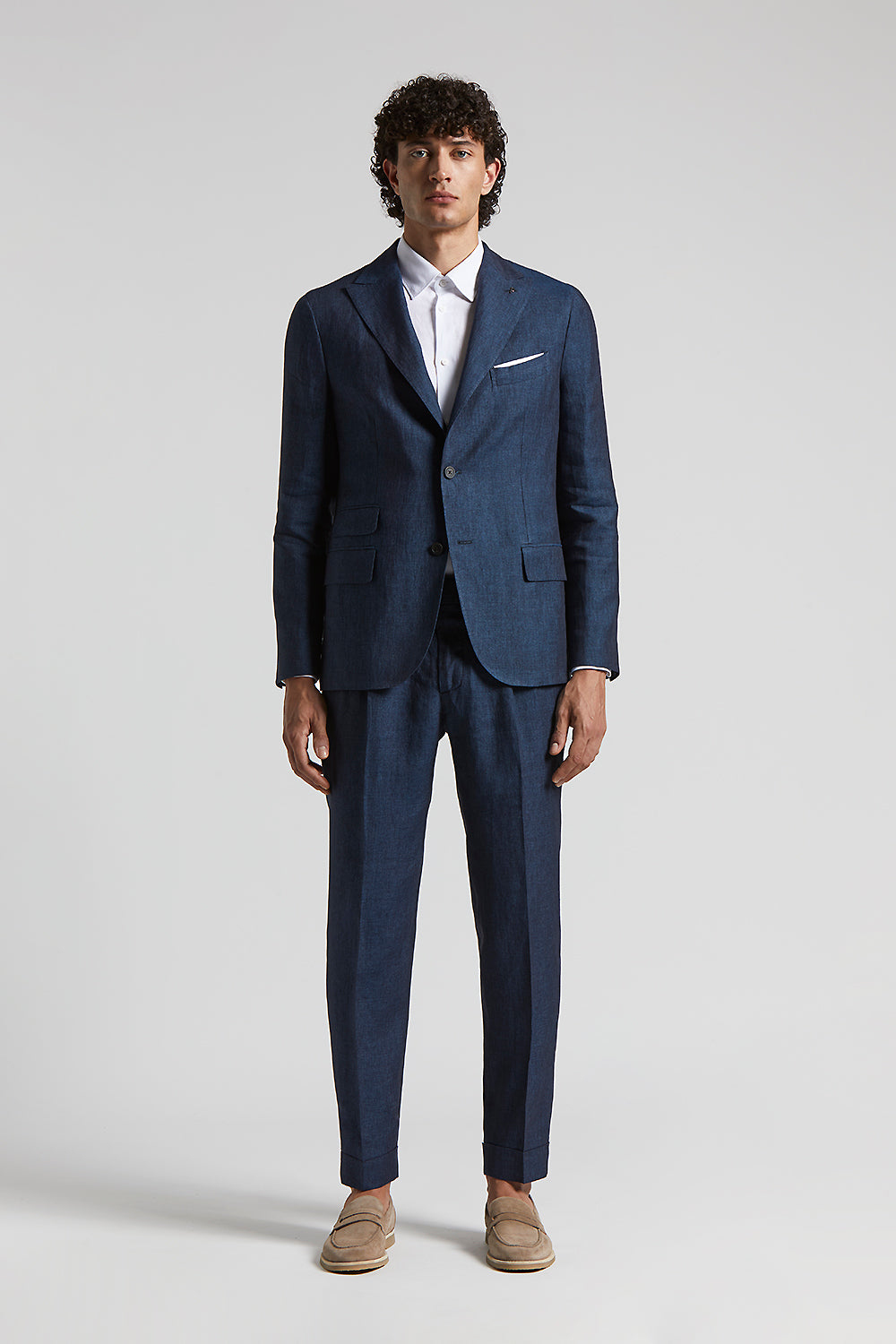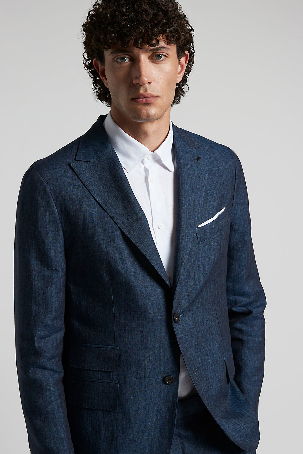 A classic, traditional blazer with timeless elegance, for the man who always aims for a polished, well put together look.The yarn dyed linen fabric gives a feeling of freshness and originality, with n…