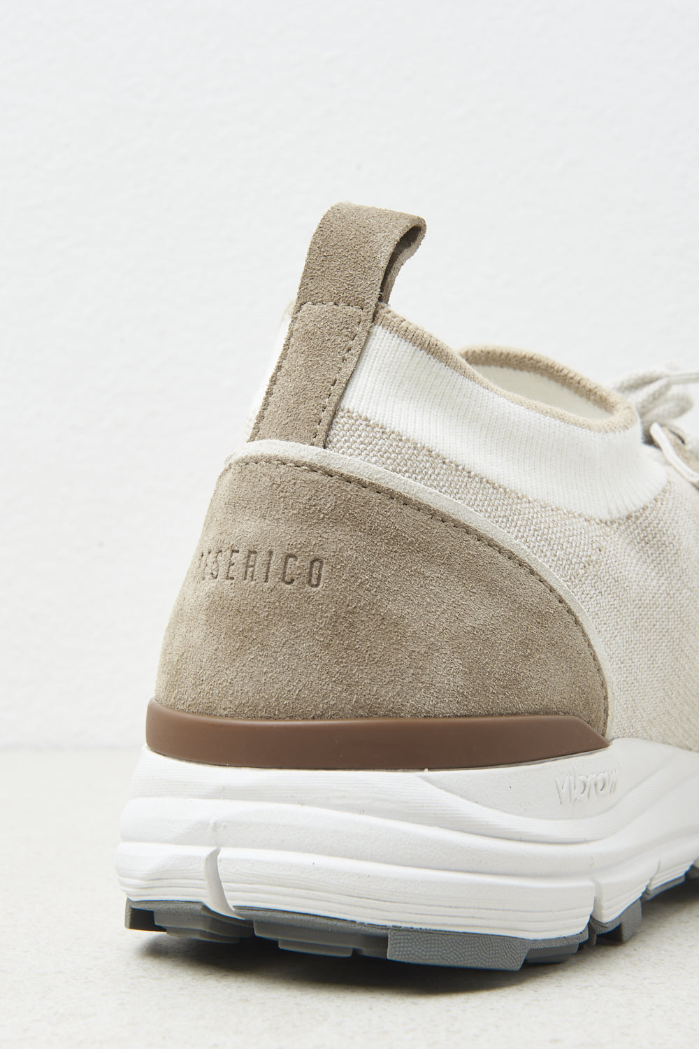 The three-colour light Vibram sole and cotton laces express a perfect balance of comfort and style. Peserico logo on the heel.