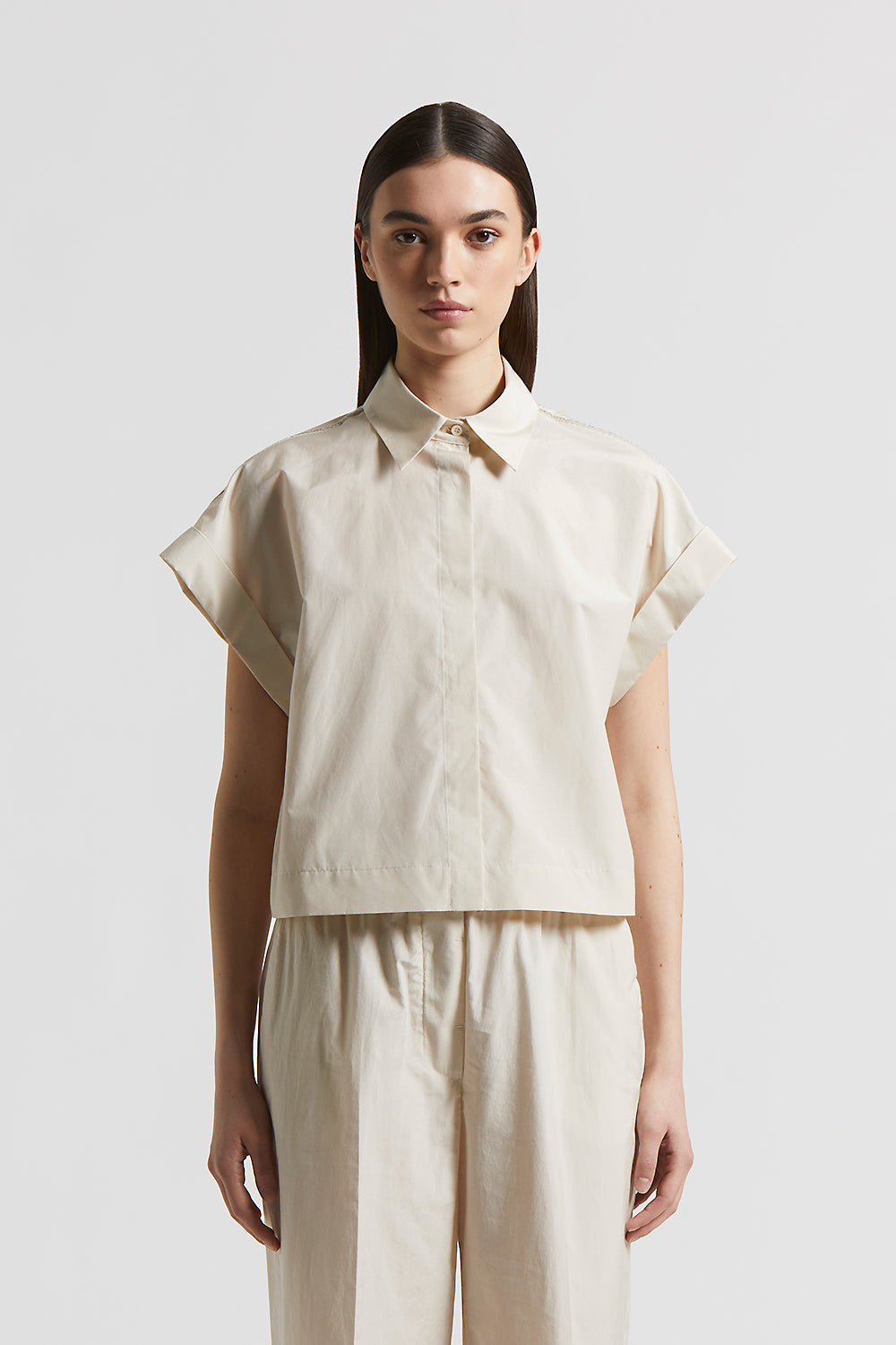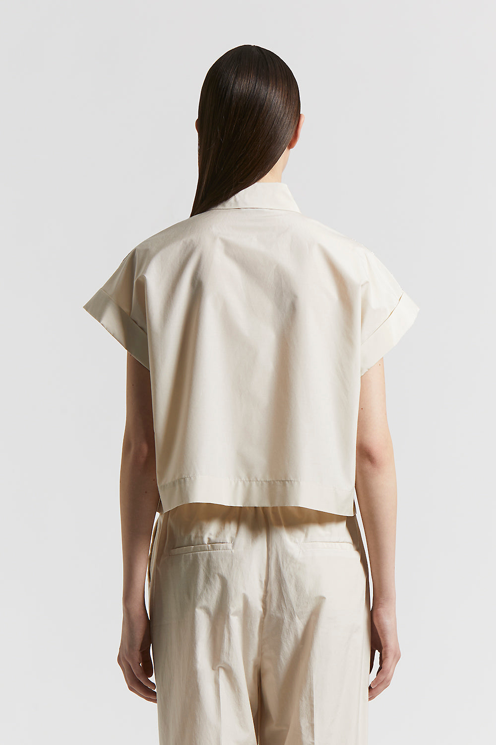 The crop fit makes this shirt ideal for pairing with high-waisted trousers or midi skirts.