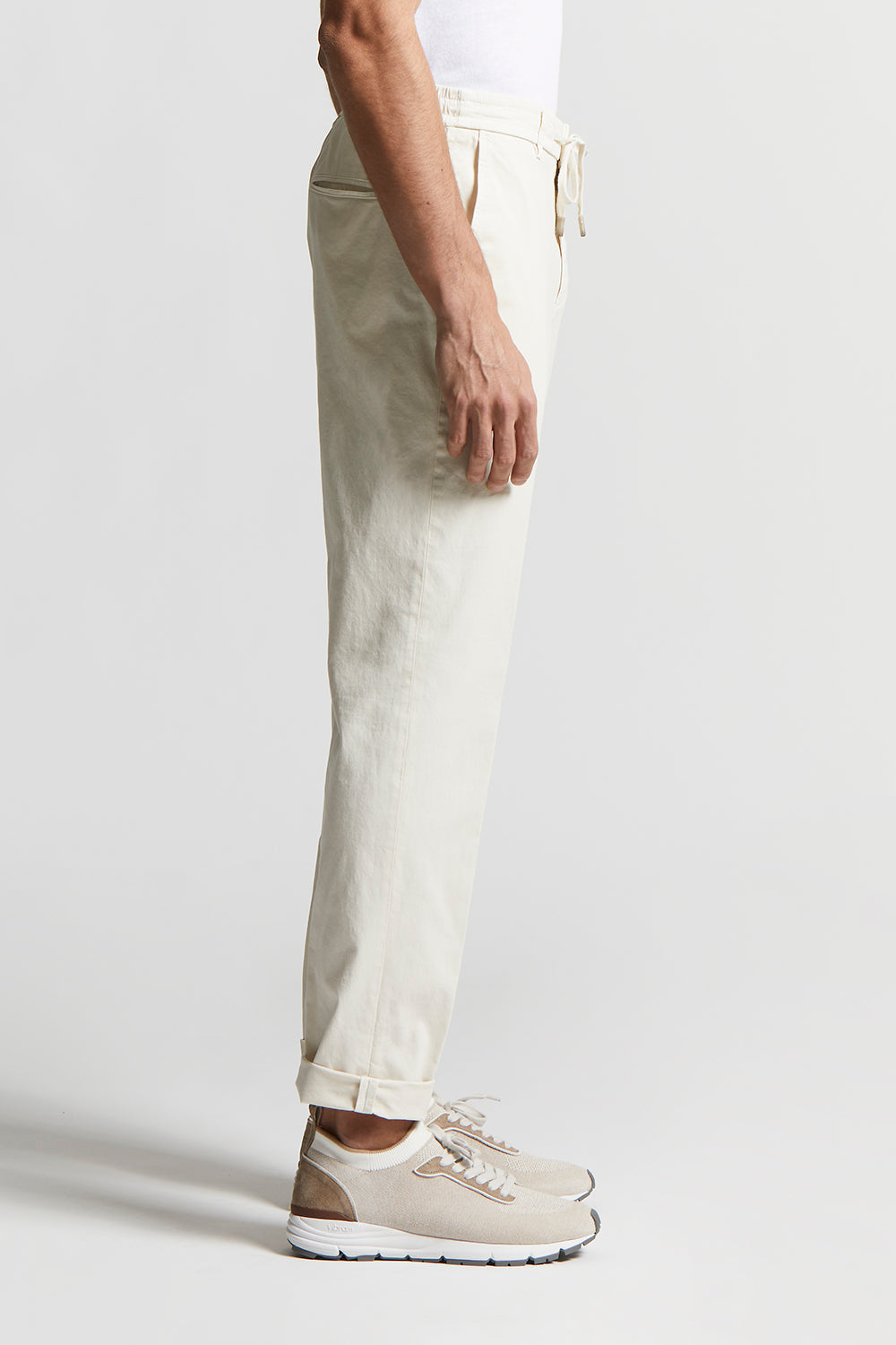 A blend of comfort and style in a perfect balance of modernity. Garment dyeing gives these trousers a soft, original colour.