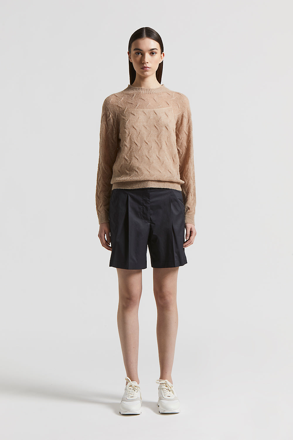 Pleats delicately define the line, while a relaxed fit and regular waist ensure comfort and graceful movement.