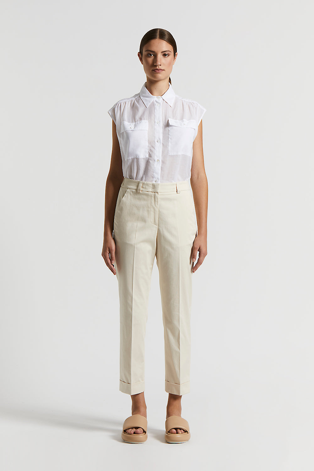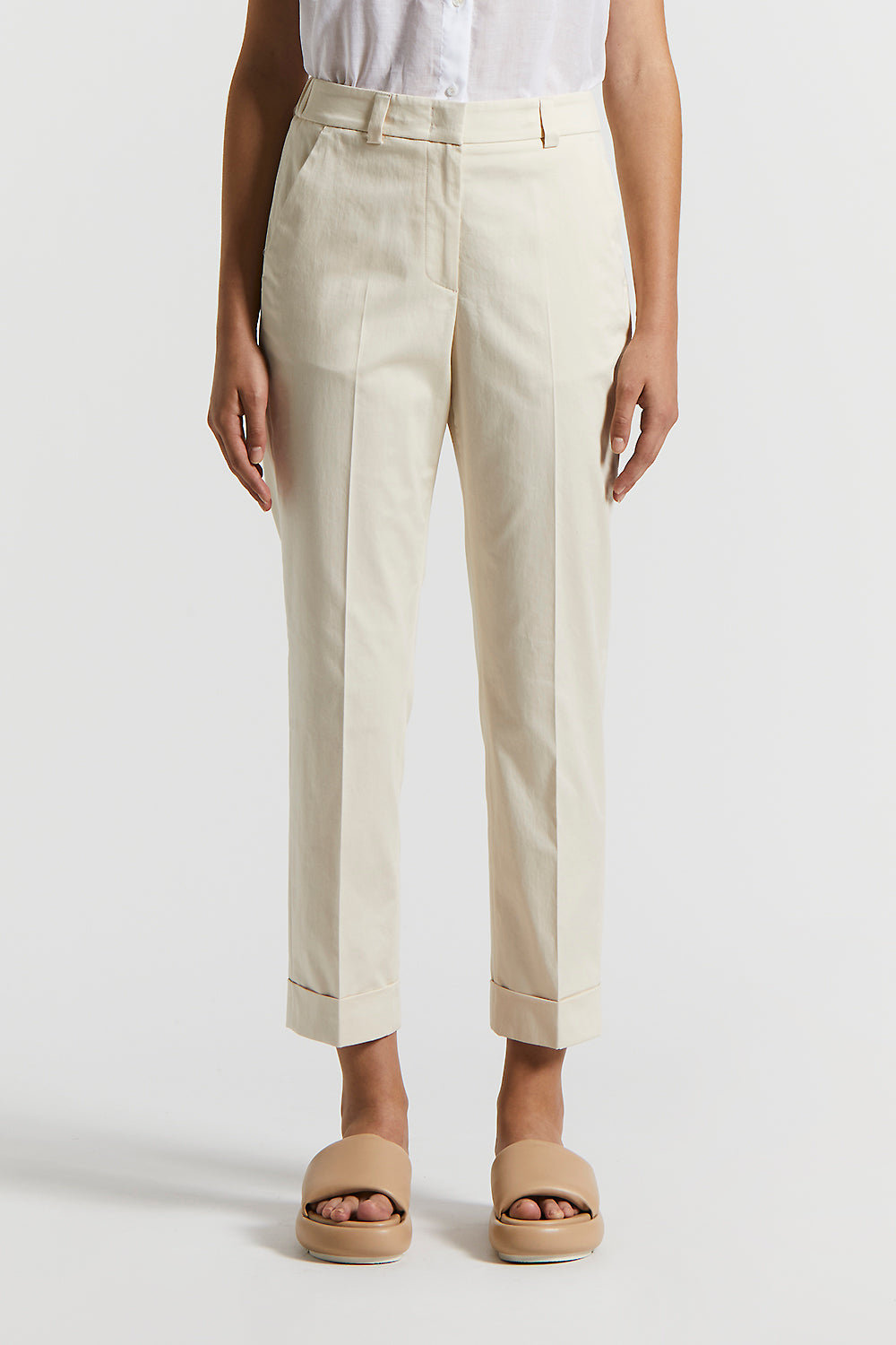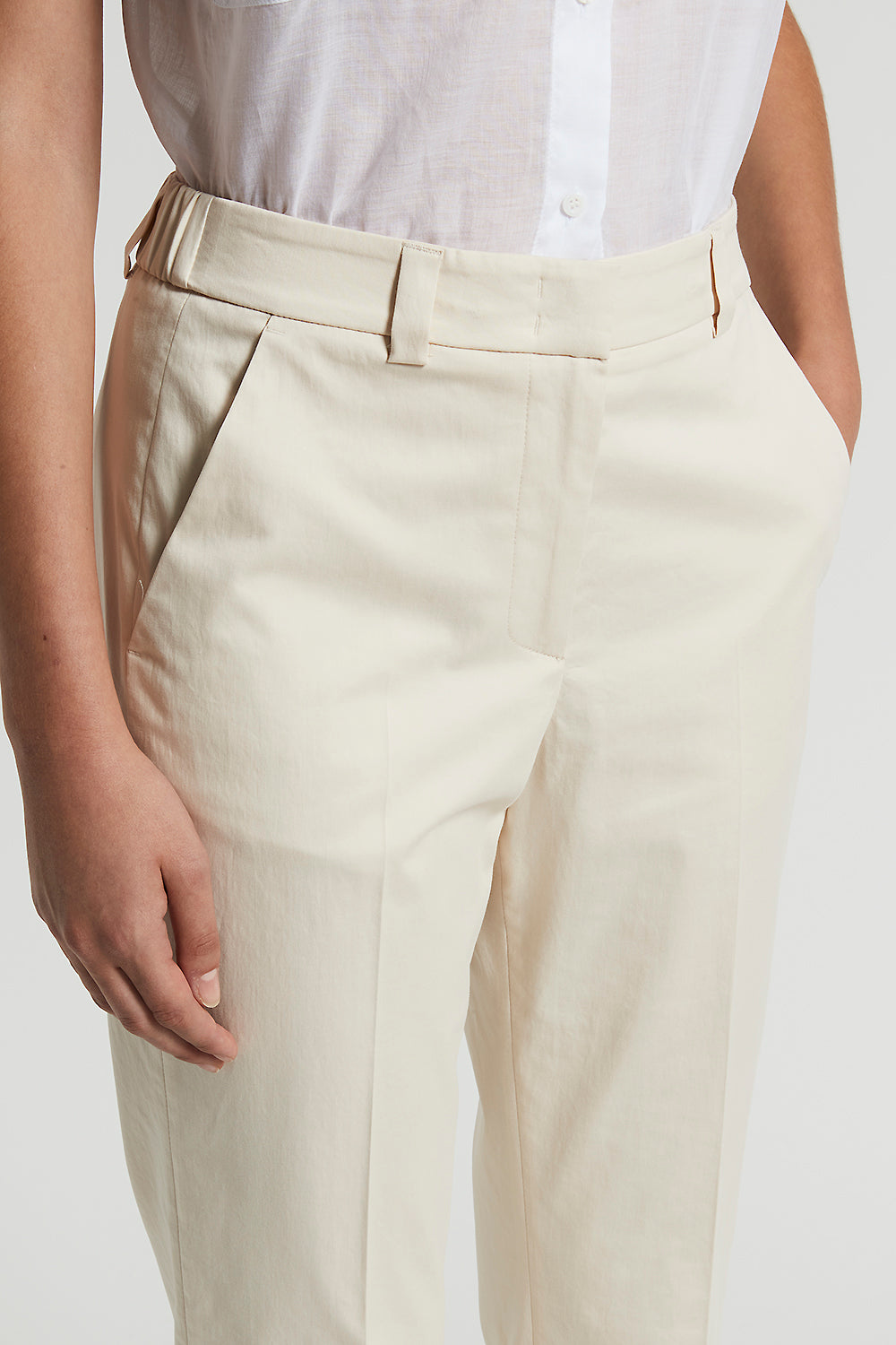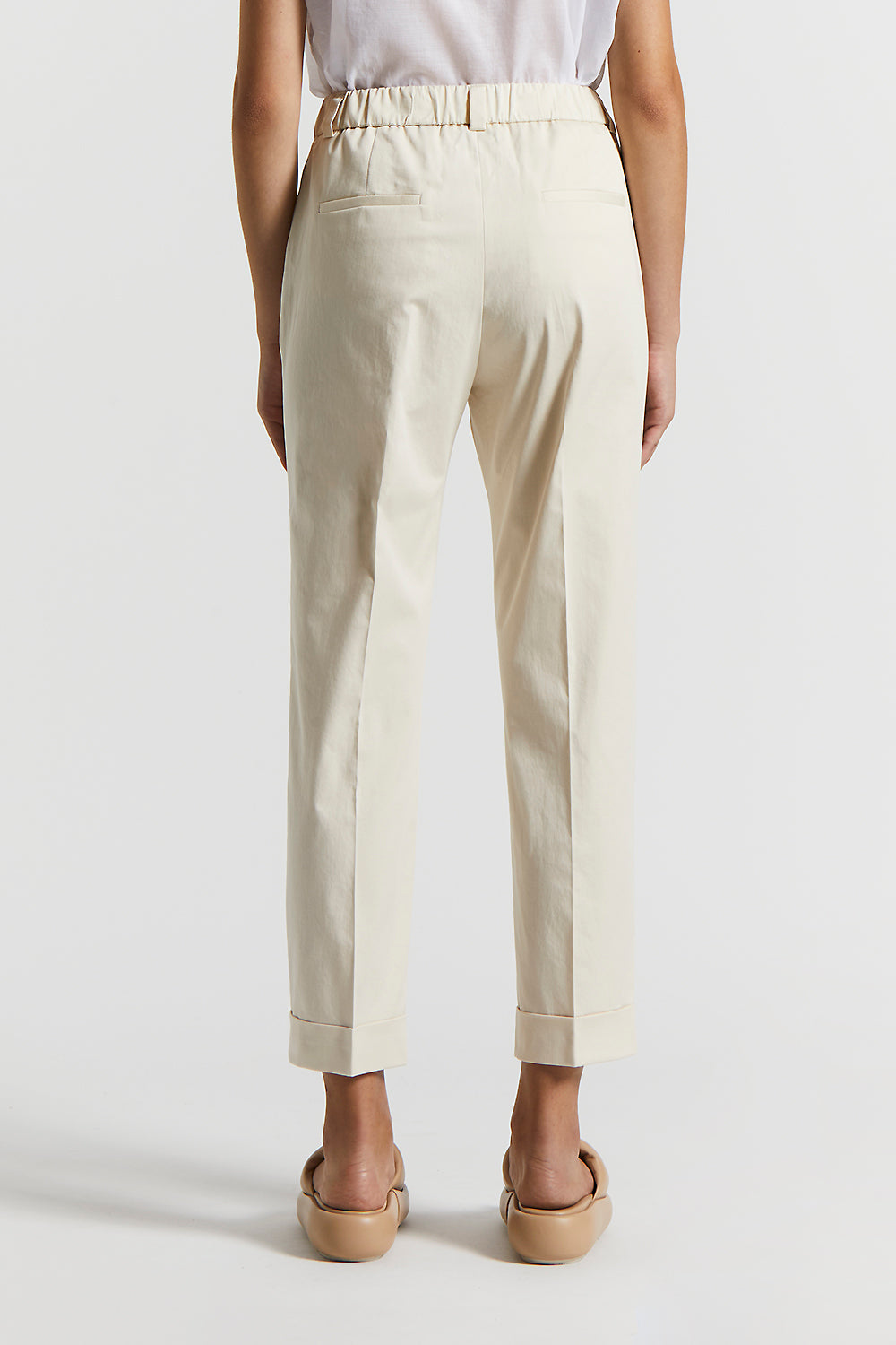 Peserico – Stretch cotton satin trousers – Quartz sand