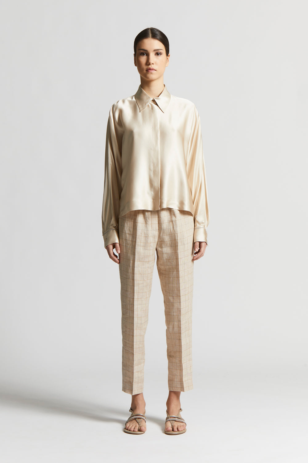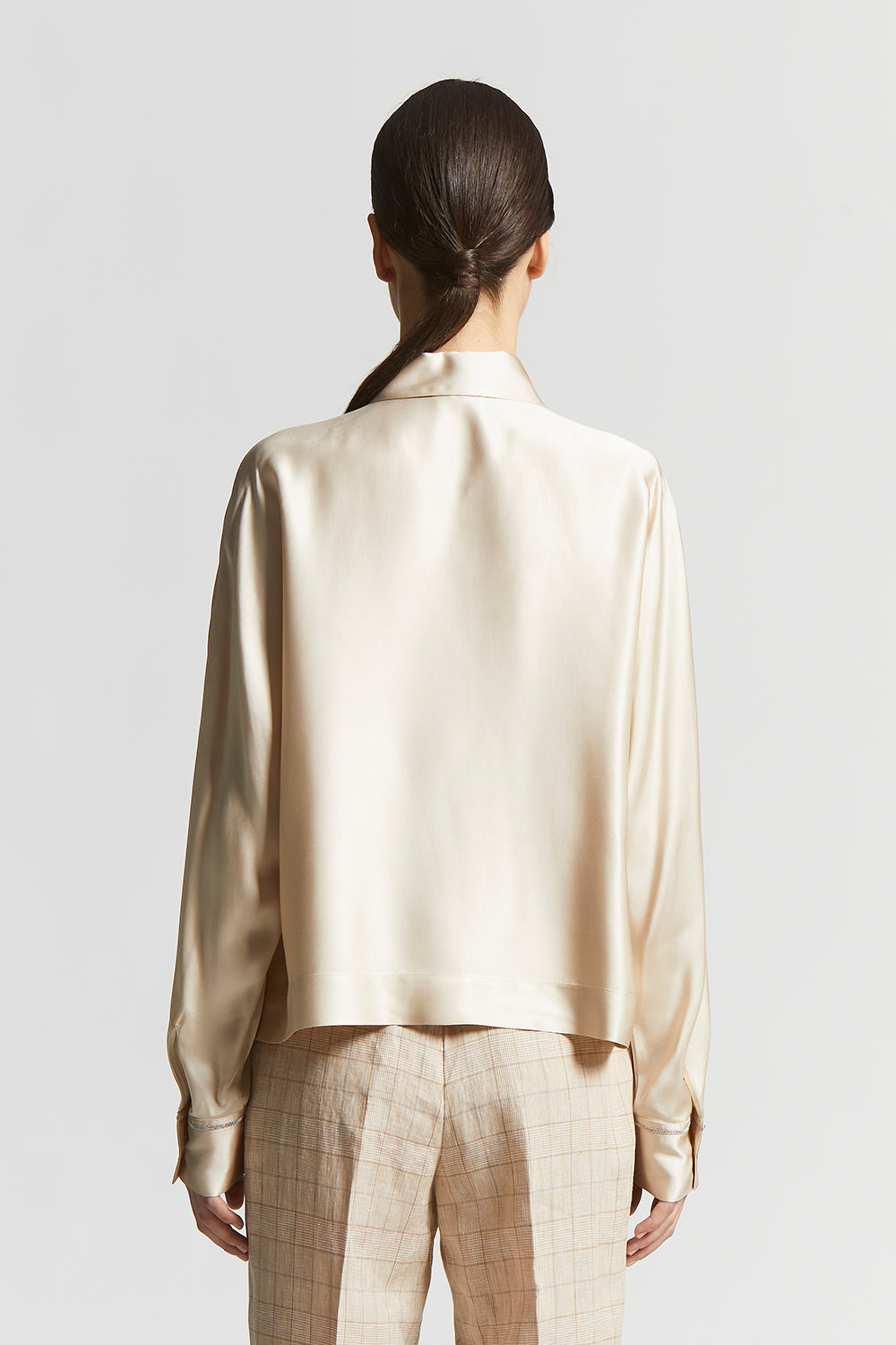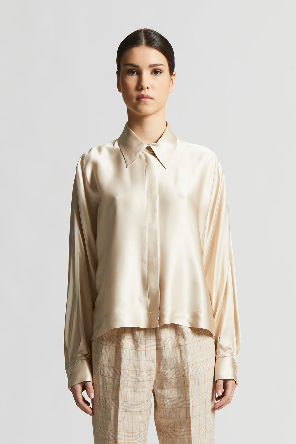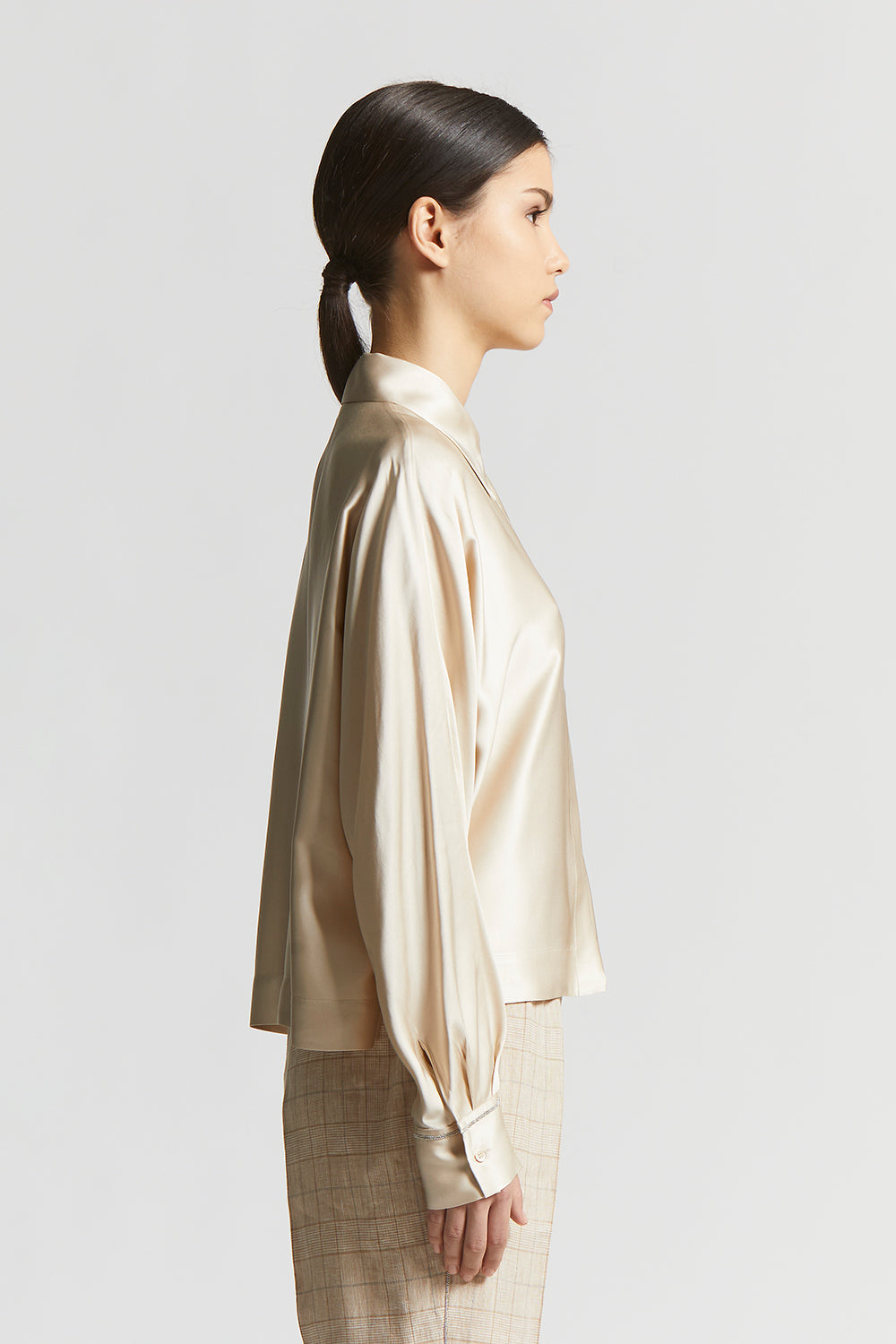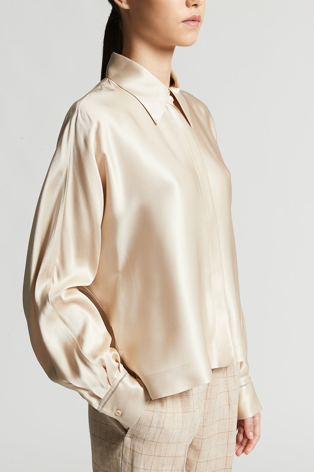 Peserico – Viscose satin shirt with kimono sleeves – Amber beige