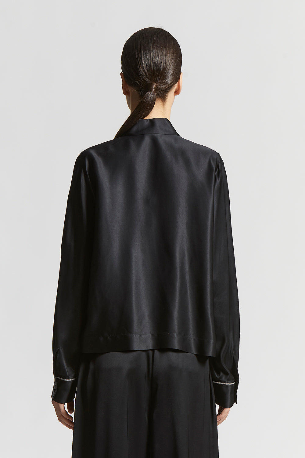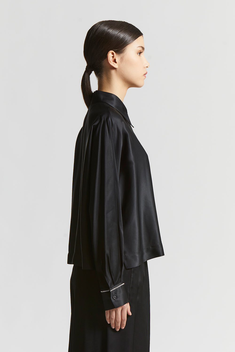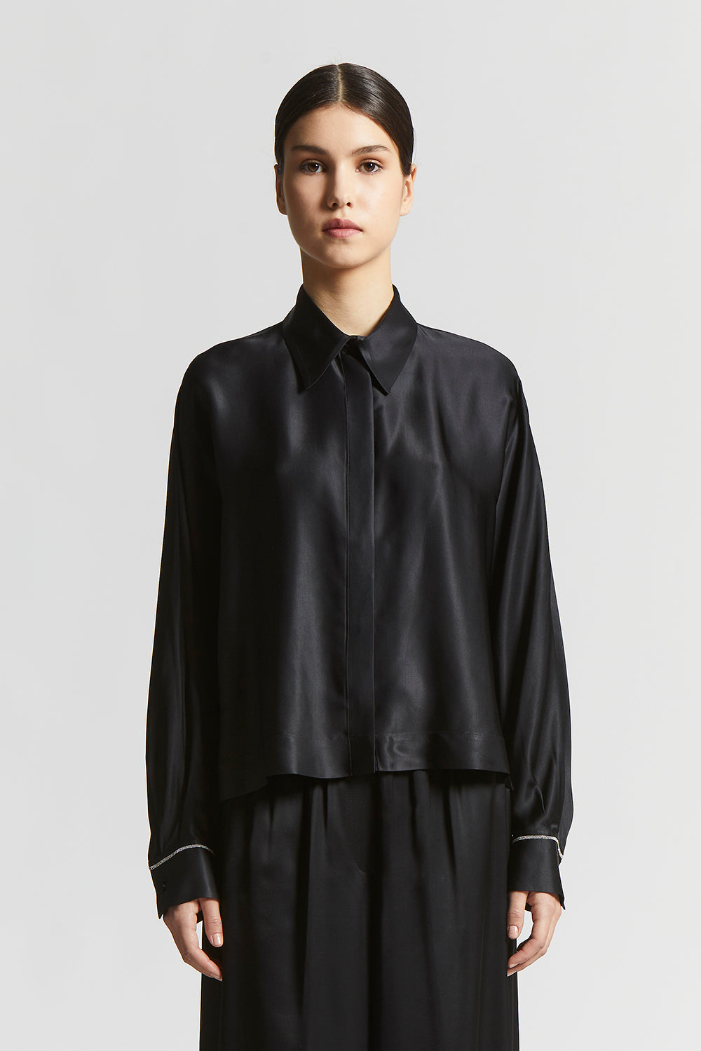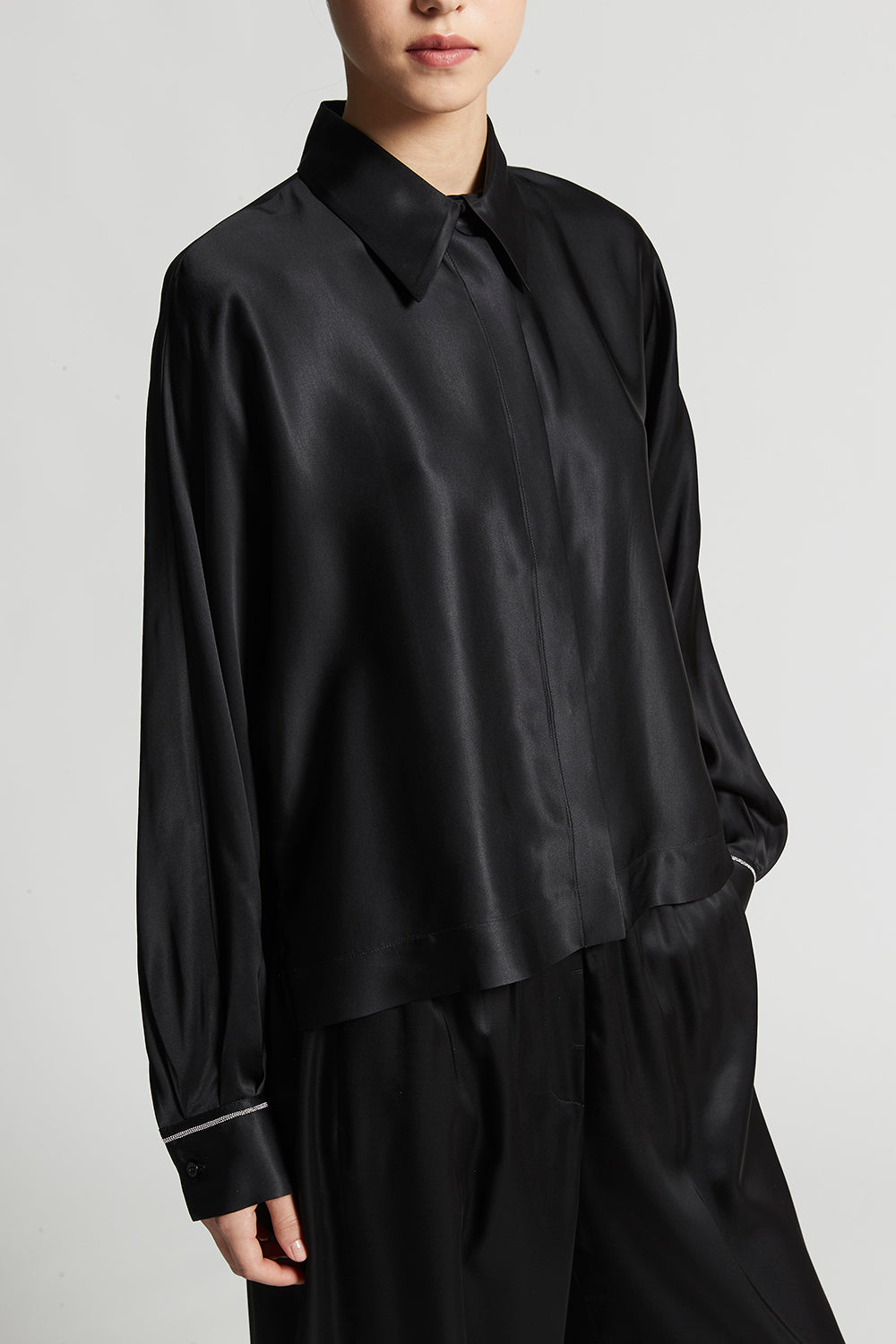 Peserico – Viscose satin shirt with kimono sleeves – Black