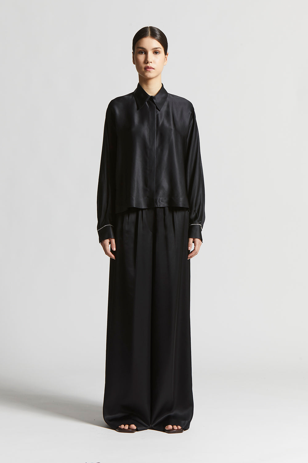 Made of luxurious viscose satin, this long-sleeved kimono-cut shirt is the perfect combination of elegance and contemporary style.