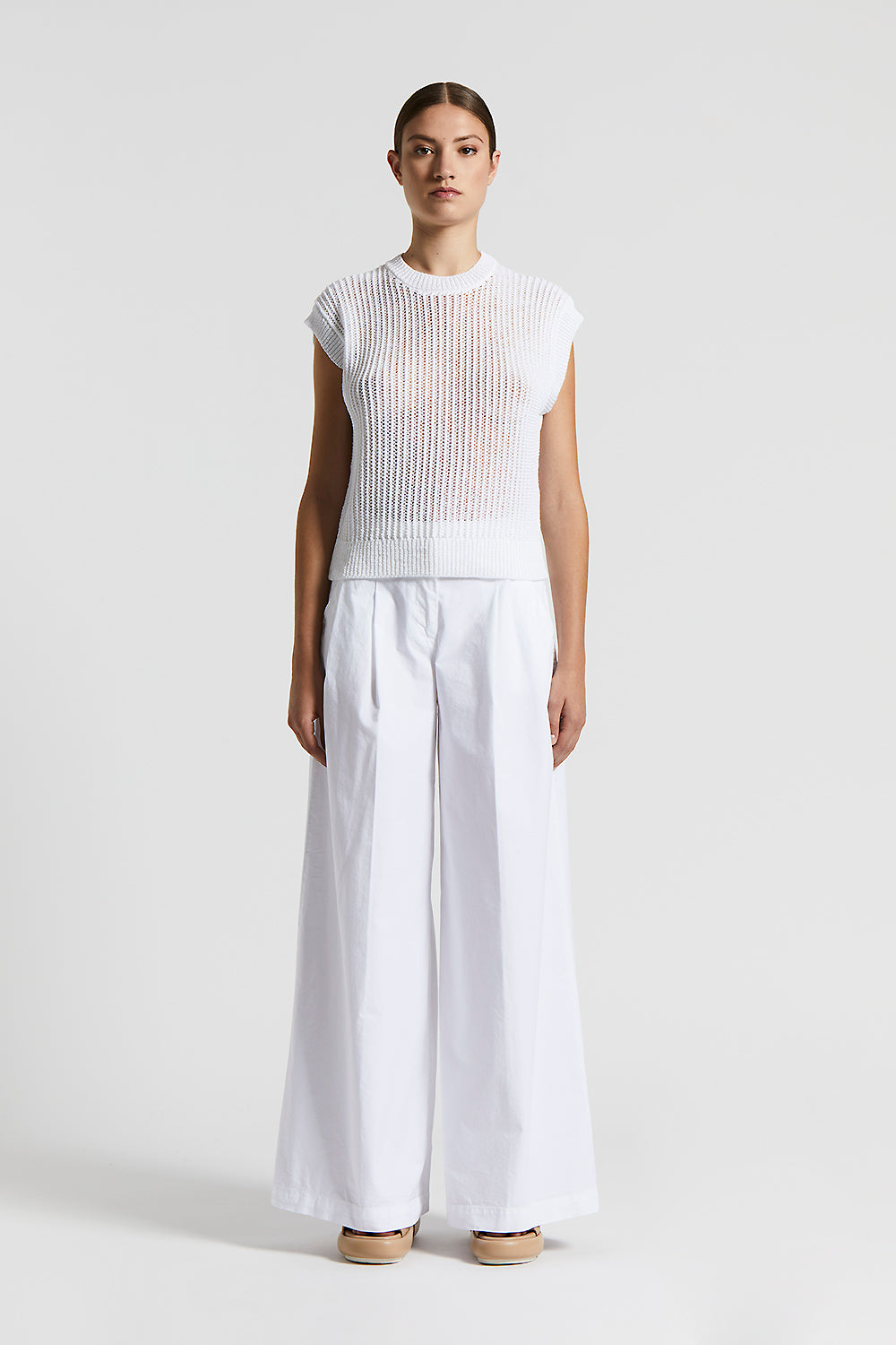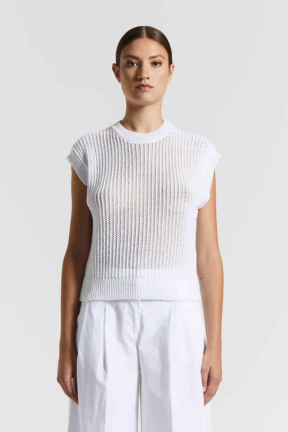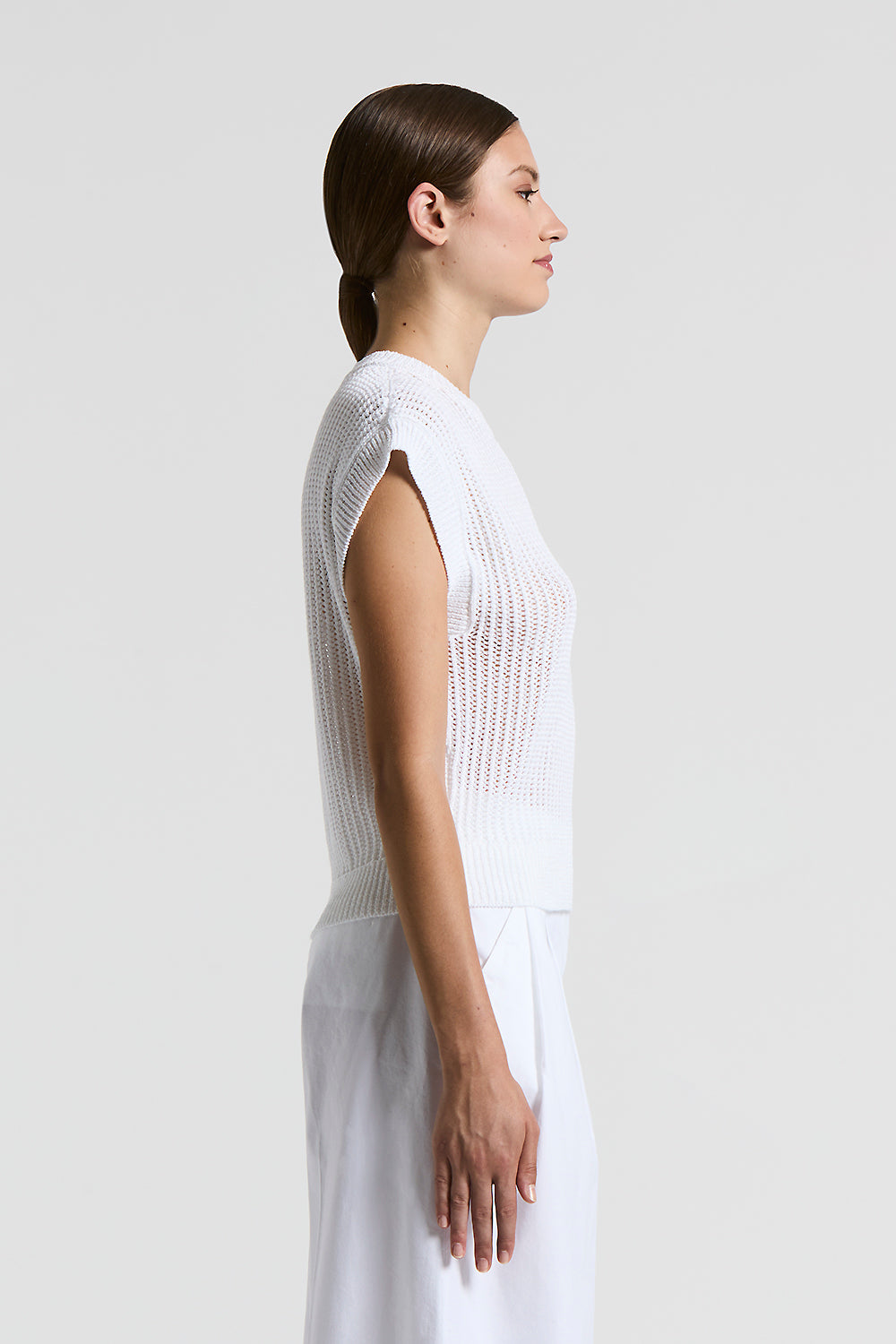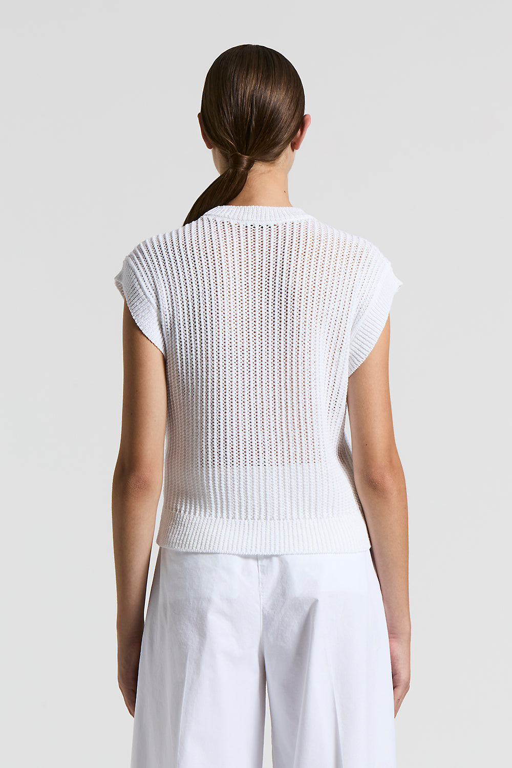 The perforated rib knit adds a contemporary touch, creating a sophisticated and intriguing texture.